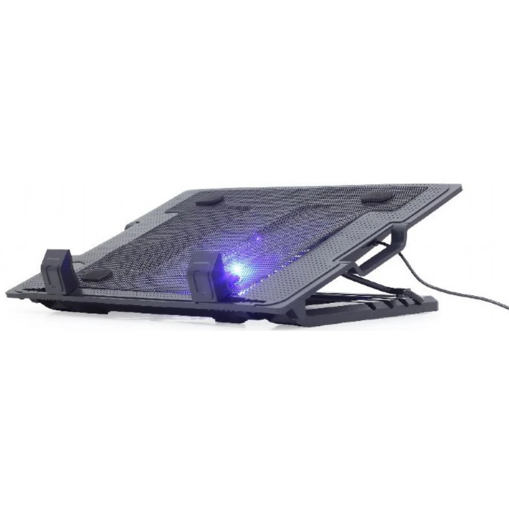 Gembird 17" notebook cooling stand with blue LED 15cm fan, adjustable height.
