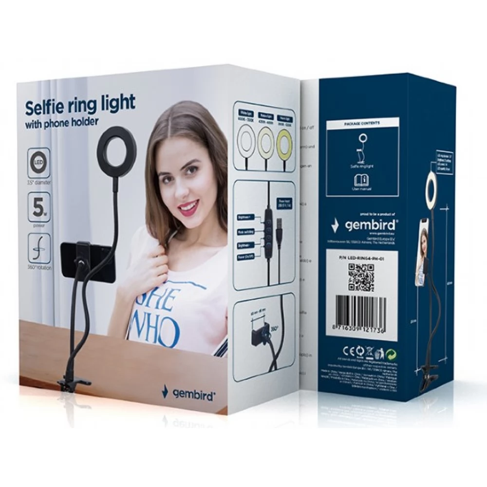 This LED ring light helps you look your best. Whether it's a video call, self-made or make-up, this bell lamp provides optimal lighting in any room, including a desk, kitchen, bathroom, etc.