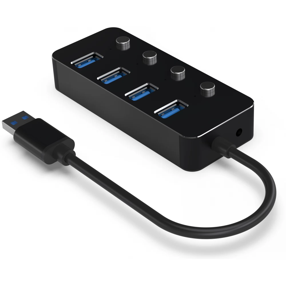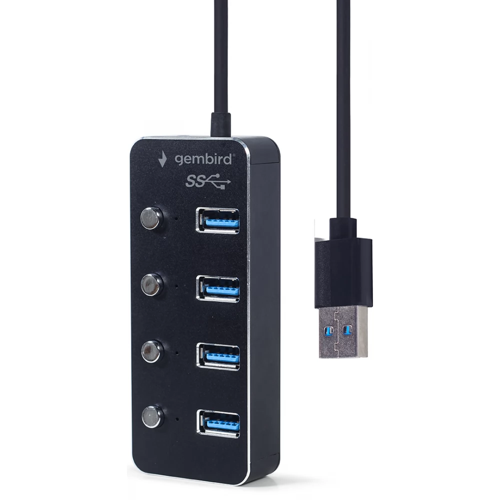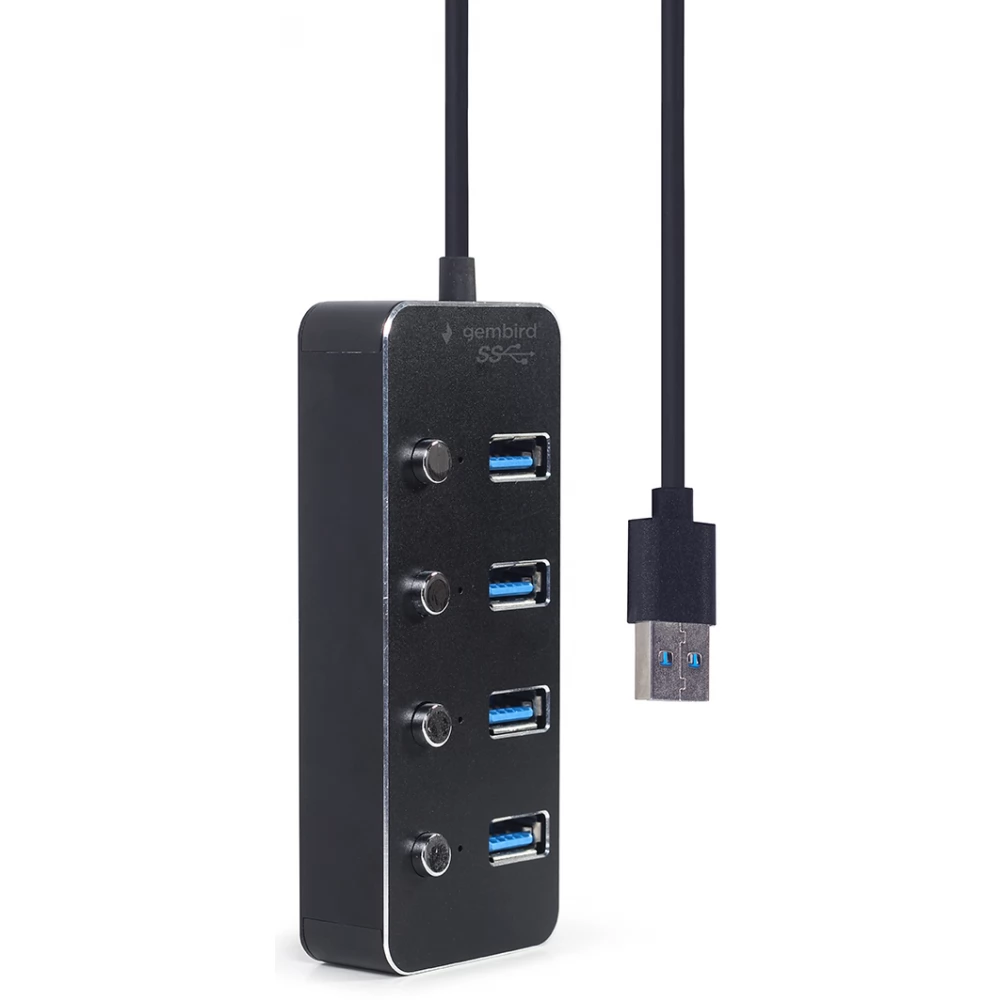 GEMBIRD USB 3.1 (Gen 1) powered 4-port hub with switches black