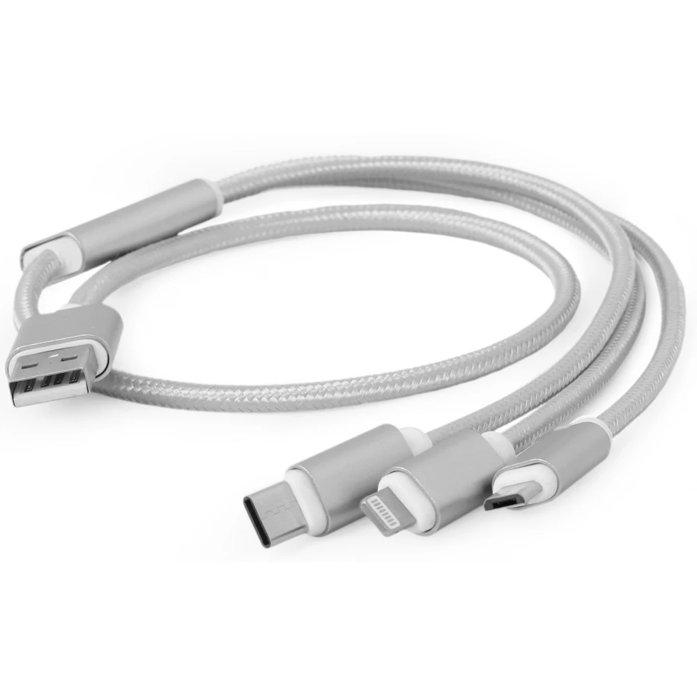 GEMBIRD USB Lightning + Micro USB + USB Type C Converter Silver 1m CC-USB2-AM31-1M-S