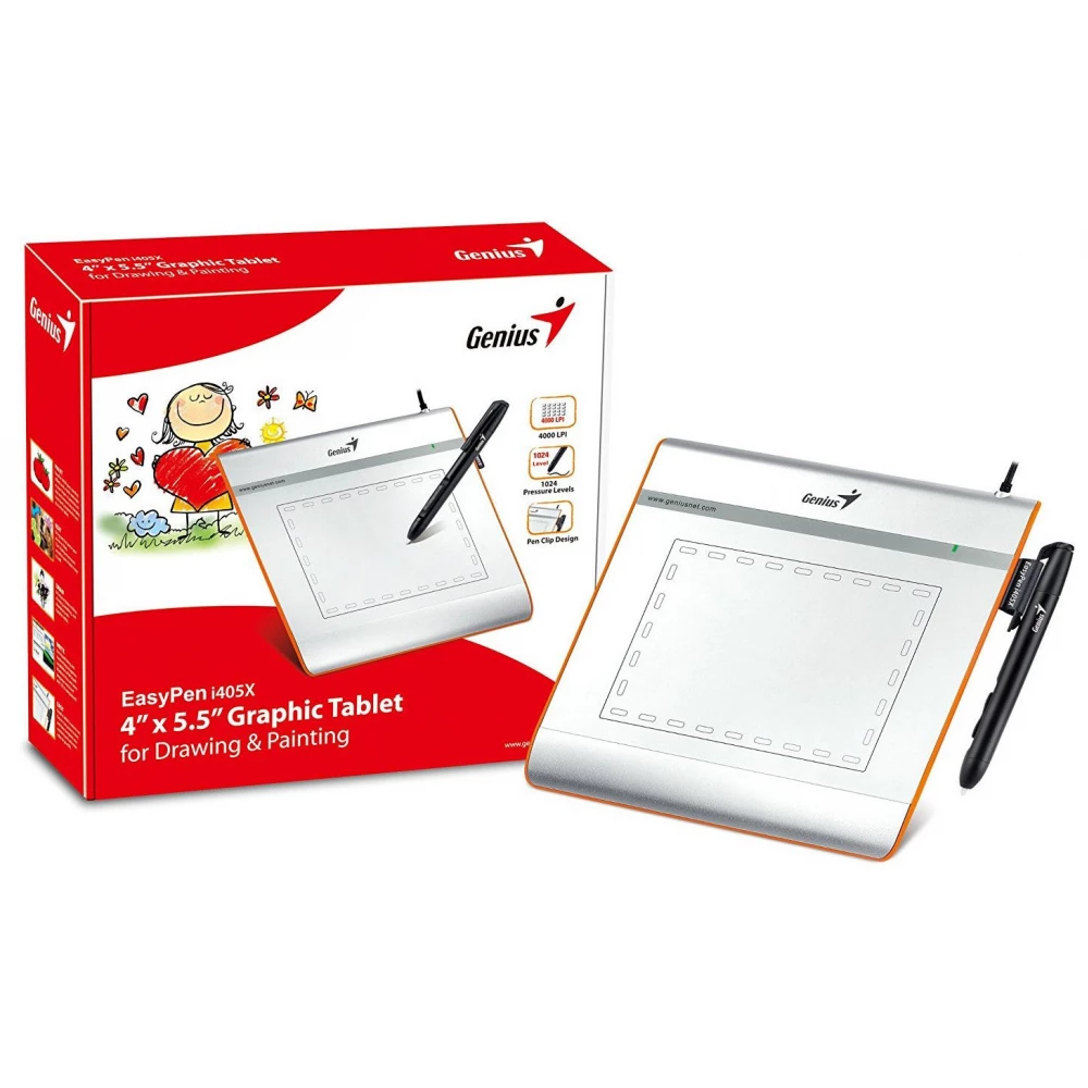 A simple, easy and fun way to develop creativity. Genius's new Easypen i405x device allows you to draw easy on your computer using a touch pencil and a touchboard. The device has a 4 "x 5.5" work surface or a wireless pen for Windows and Mac users for writing, drawing, sketches and email signatures. The Easypen I405X can be used more comfortable and easier than a normal mouse. The cursor moves exactly where the pen takes.