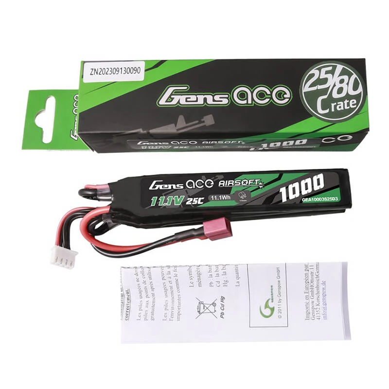 GENS ACE Airsoft 25C 1000mAh 3S1P 11.1V Nunchuck 3X T-plug LiPo rechargeable battery