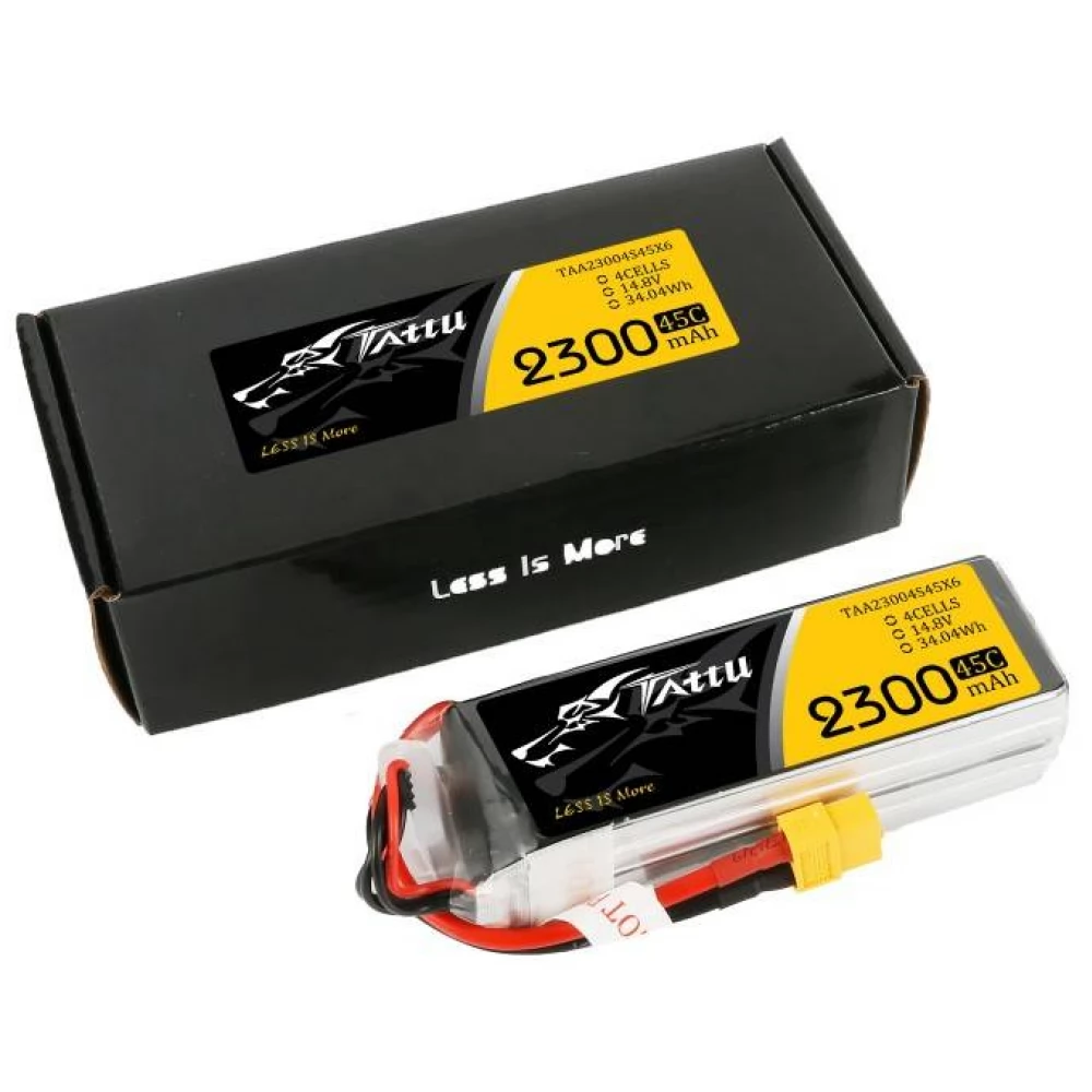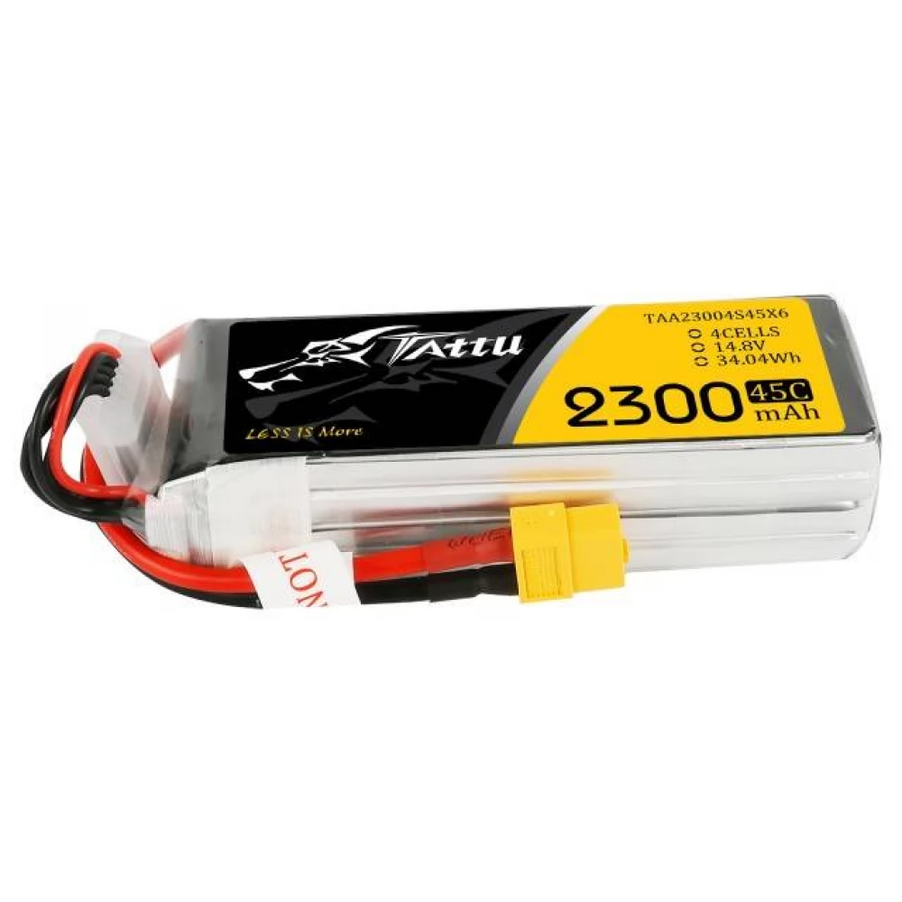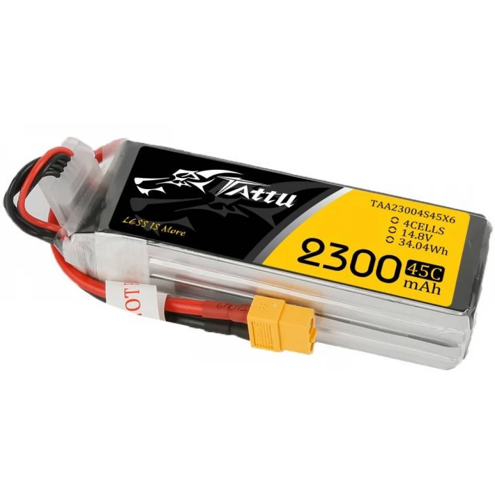 Tattu 2300mAh 14.8V 75C 4S1P XT60 battery for building additional models and remote control vehicles.