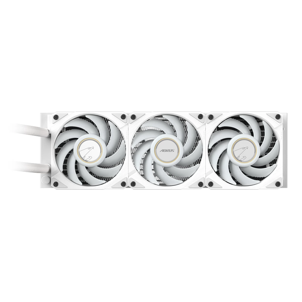 • The water block and fan have gradient lighting, and the ARGB fan lighting can be synchronized with other AORUS devices via GCC (GIGABYTE Control Center).