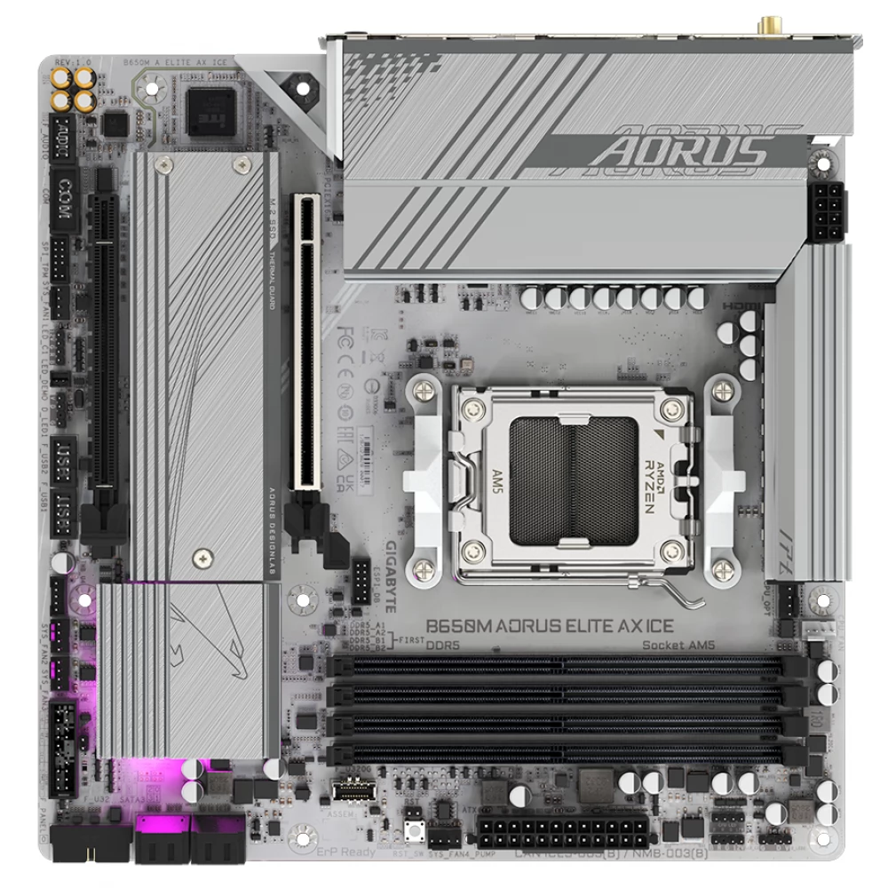 The new B650M AORUS ELITE AX ICE motherboard boasts DDR5 support, 192 GB maximum memory, Ultra Durable™ power supply and cooling. This stunning hardware combines Aorus' extensive driver and BIOS support with RGB Fusion 2.0 lighting to make your PC look stunning inside and out.