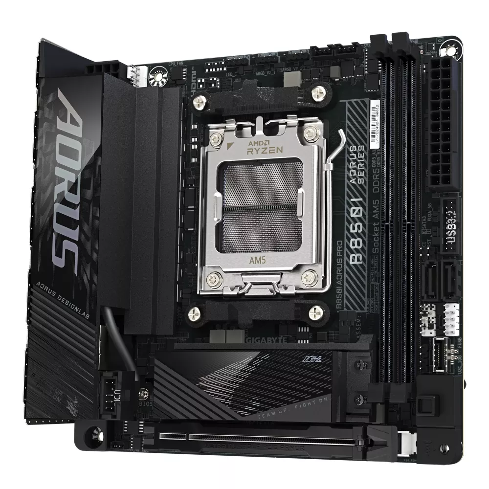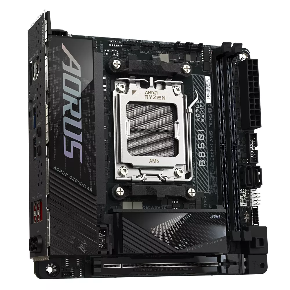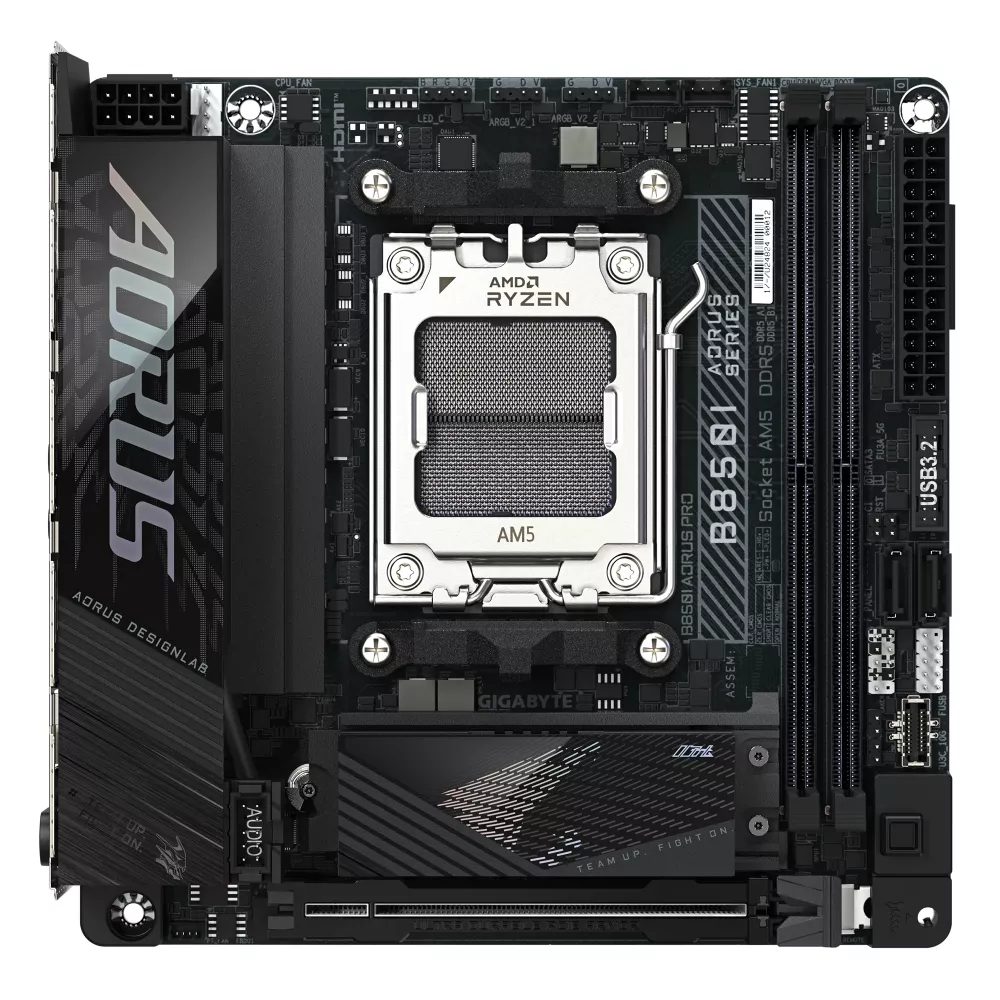 GIGABYTE B850I AORUS PRO type motherboard with Socket-AM5 socket, AMD B850 chipset, video card integrated in the processor, 2 DDR5/CUDIMM memory sockets (max 128GB). 4 USB 2.0 ports, 4 USB 3.0 ports, 4 USB 3.1 ports.