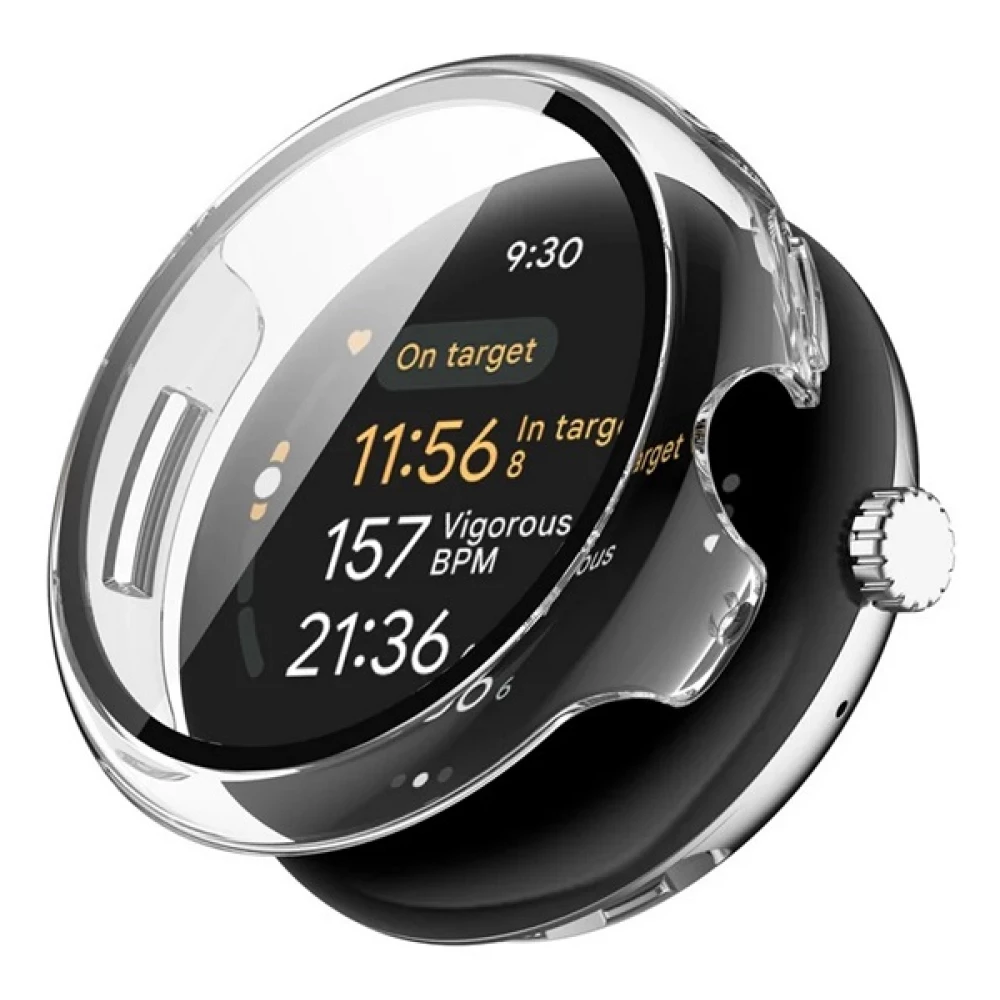 GIGAPACK google pixel watch 3 45mm plastic frame bumper, ütésállóság + screen protector üveg, transparent