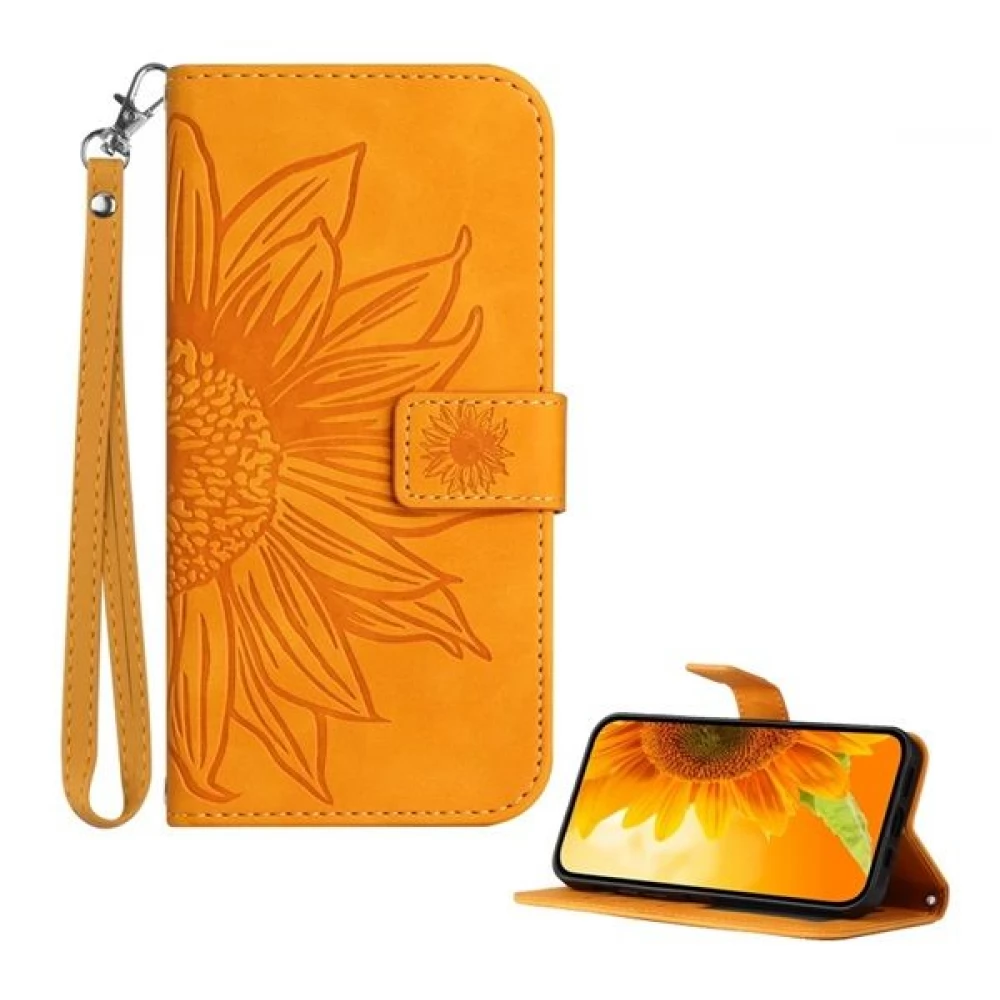 This elegant, leather-effect, side-opening FLIP case is a practical and stylish choice for everyday use. The sunflower patterned cover gives a fun look while providing reliable protection for the device. It has internal card holder pockets and a detachable wrist strap, so it can always be worn comfortably. Thanks to the table holder function, it is also ideal for watching movies or video calls, and the soft inner lining protects the display from scratches.