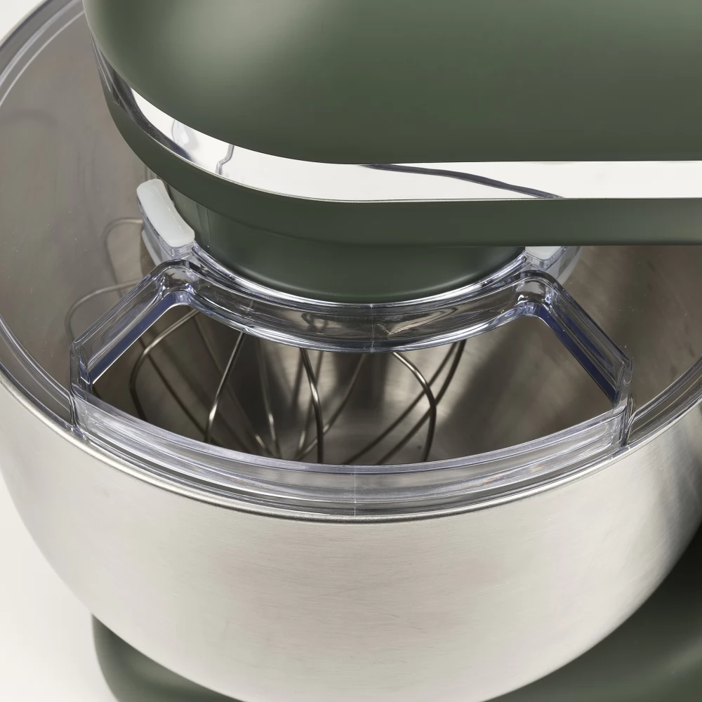 - Accessories: kneading hook and mixer aluminum, whisking stainless steel, transparent plastic lid.