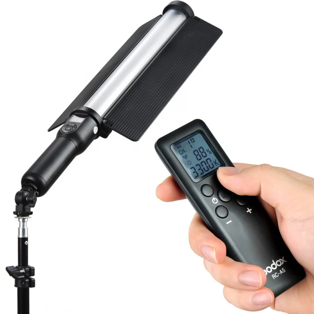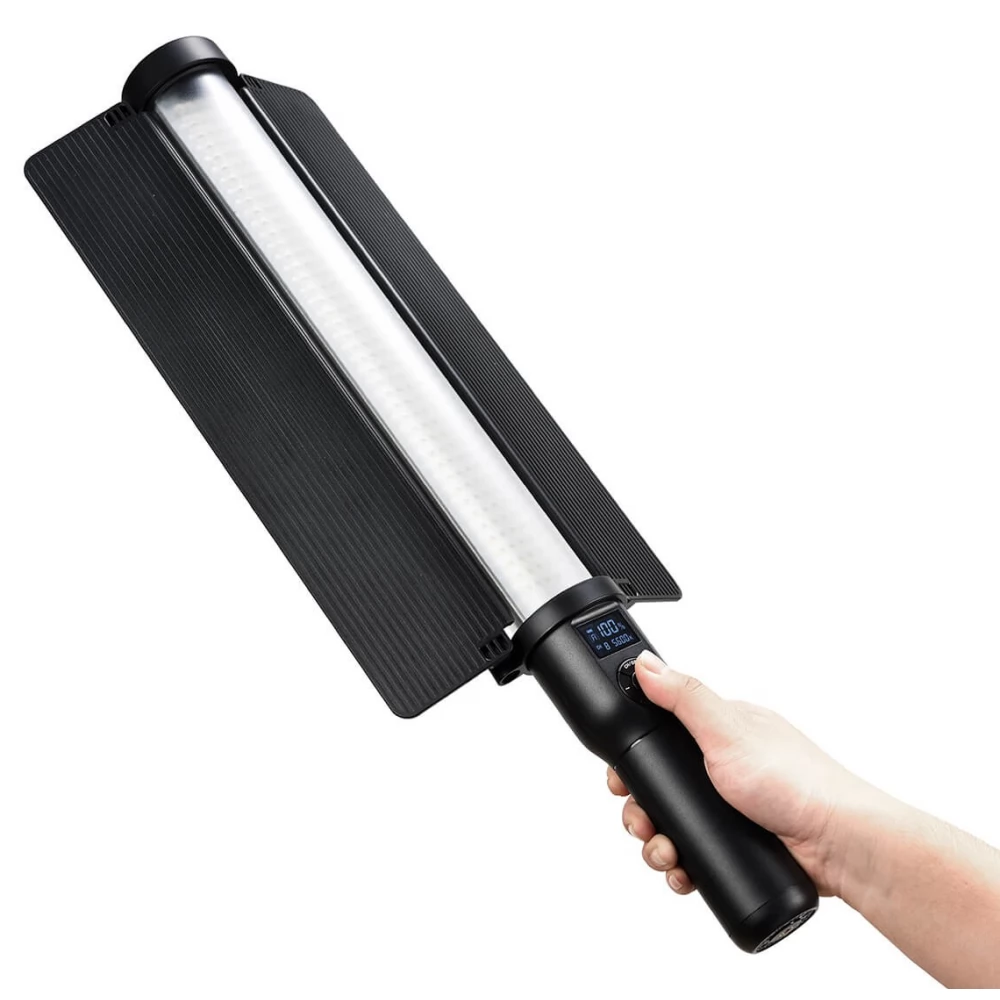 Godox's LC500 LED light is versatile, easy to use by hand, but can also be attached to a tripod. Equipped with a carrying case and remote control, not only the transport, but also the adjustment is convenient, and the use becomes even more customizable with the fixed light deflector plates.
