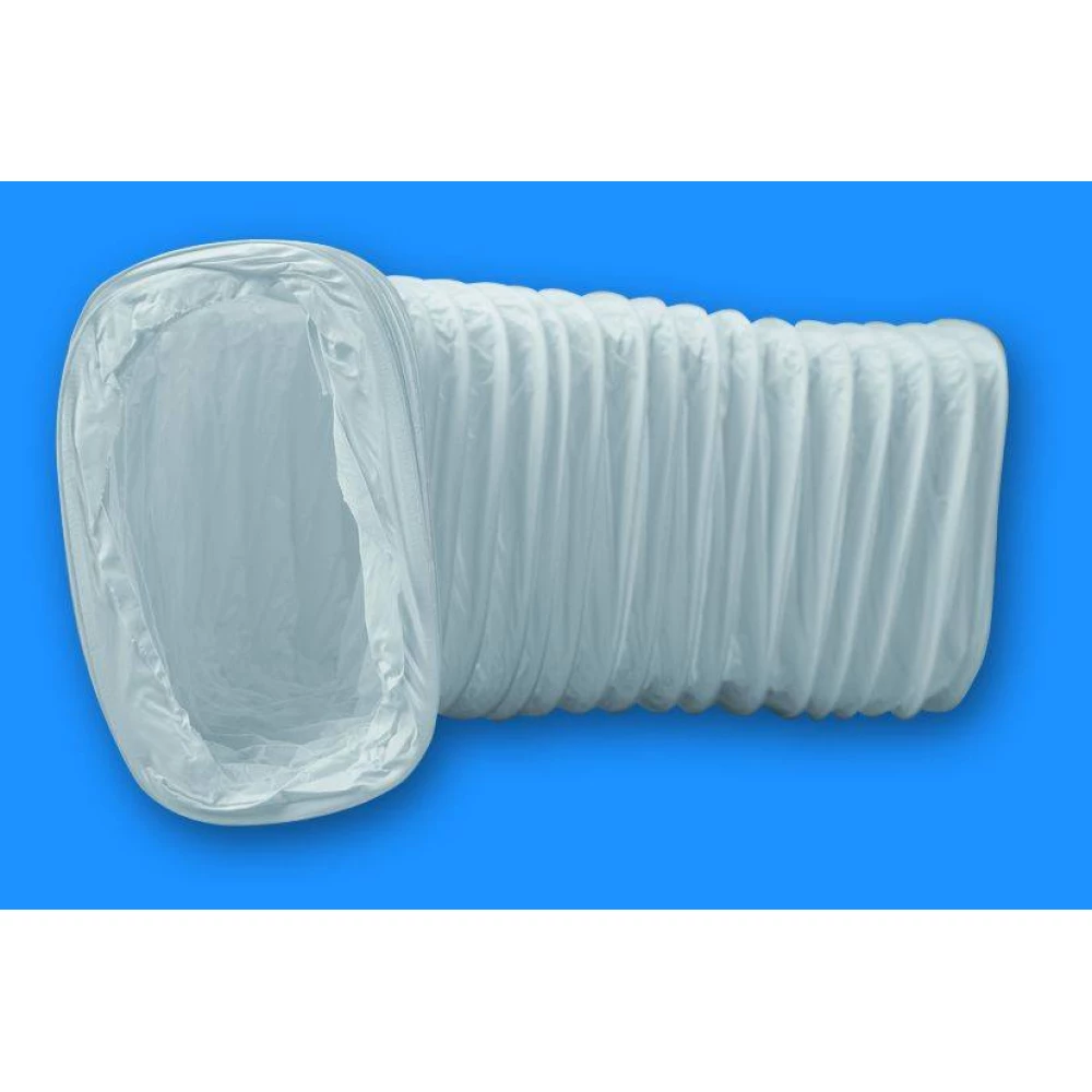FLEXIBLE AIR-TECHNICIAN DUCT (PVC): A flexible element that can be placed between the start and end point of an air-technology system. With its application, the ventilation connection of the system can be more easily covered/hidden. It has a smaller "thickness" size compared to the equivalent "traditional" pipe system with a round cross-section, so it can also be placed in narrower places (e.g. above false ceilings, behind floor beams) without reducing (narrowing) the useful cross-section. It enables simple, quick installation. Curves / bends according to the specifics of the installation can be created with their application.