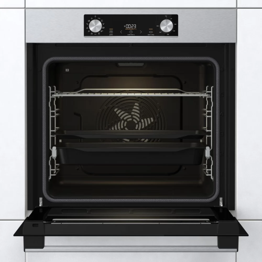 Gorenje ovens are well known for their innovative rounded ovens, which have been a distinctive feature for many years. The homemade form was inspired by traditional wood -fired furnaces and provides better airflow than competitors. Now the Homemade form has been completely renewed and the air flow has become more perfect thanks to the new heater and better distribution of ventilation openings. This is the reason why the temperature remains stable throughout the oven. The food will never be burned on one side while they are raw on the other side.