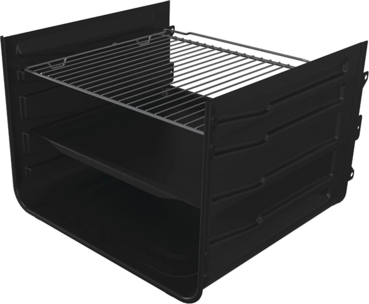 The quality and type of enamel is extremely important for the stove and its operation. SilverMatte is an extremely resistant and strong material that can withstand extreme heat. Free of micropores, it covers the surfaces of the oven and the baking tray, so it can withstand even the highest temperatures. The inner coating supports heat reflection and provides additional insulation. Therefore, the inside of the oven always remains sterile and safe.