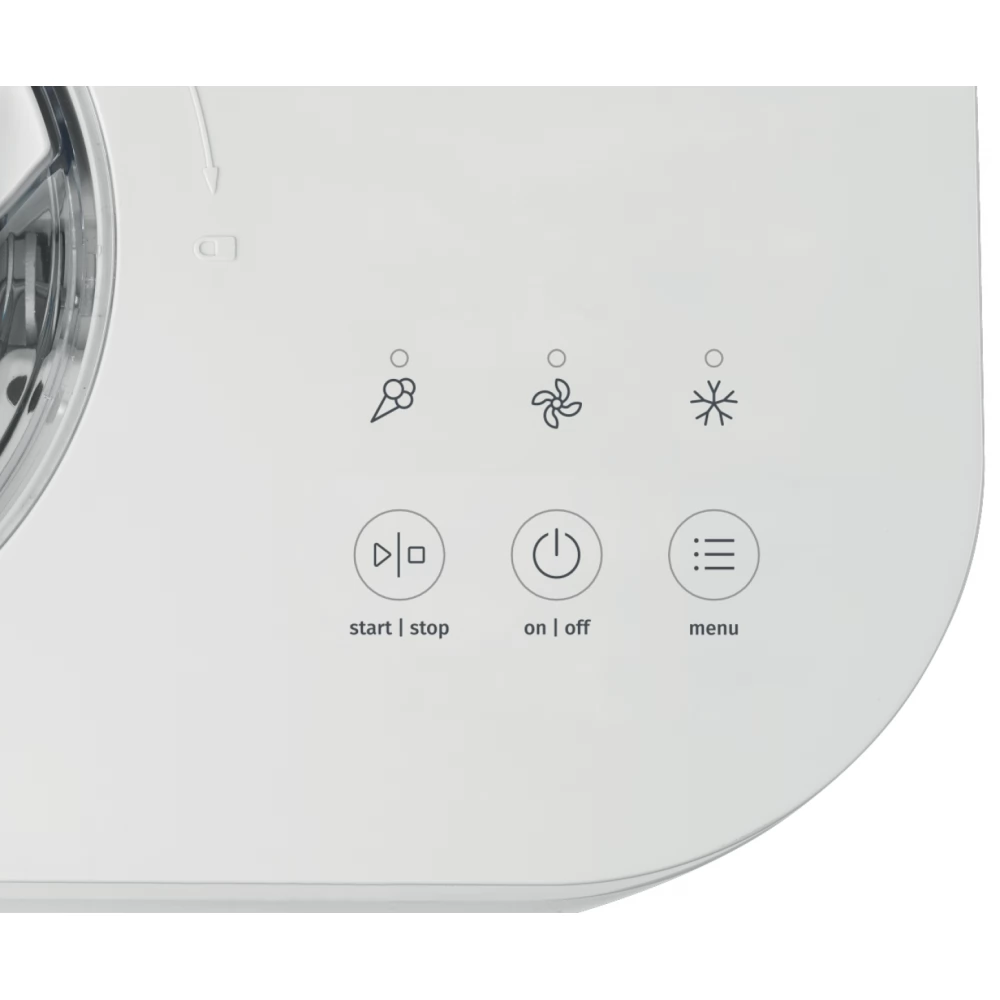 Select the desired operation on the clear touch screen. To mix the ingredients, select the Mix Only mode. This helps to avoid pre-mixing with a mixer. For cooling drinks, milkshakes or cocktails, choose the cooling only mode. To make ice cream, simply select the ice cream mode, which automatically starts the process and reminds you with 10 short beeps when it's ready.