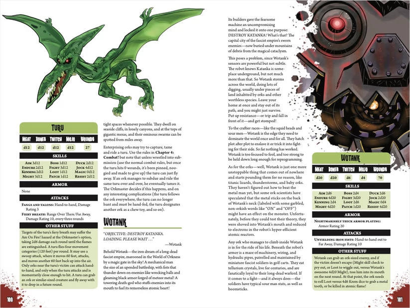 - Simple but bloody combat system - the orcs hit, kick, bite and warlord, and the rules help you do it brutally and funny.