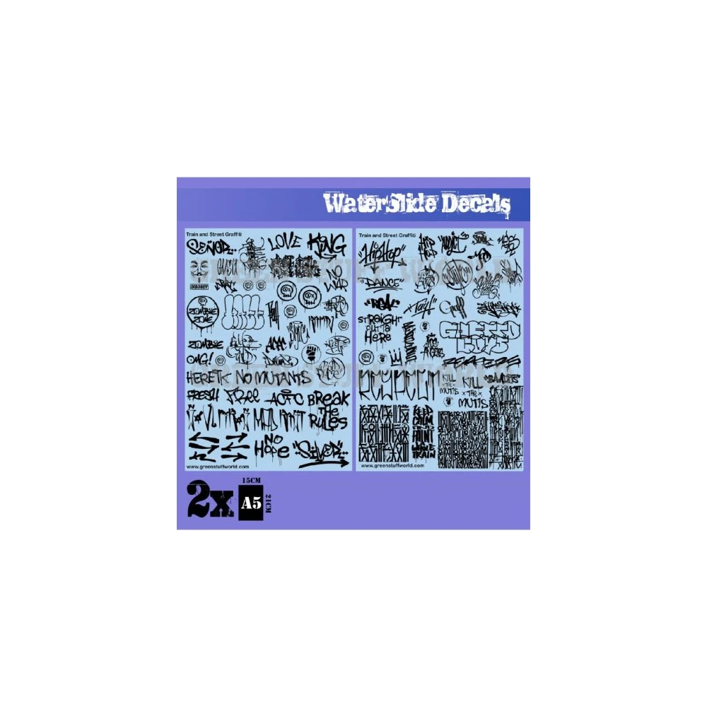 GREEN STUFF WORLD Waterslide Decals - Train And Graffiti Mix - black aqueous sticker stock 2 pieces