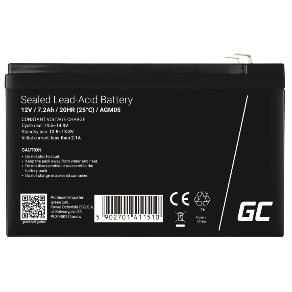 AGM VRLA 12V 7.2Ah battery.