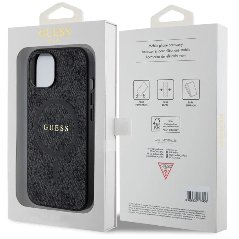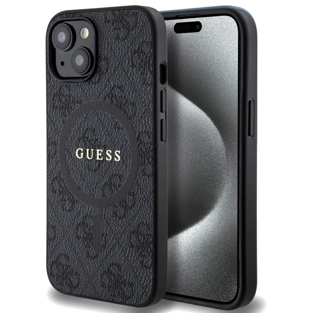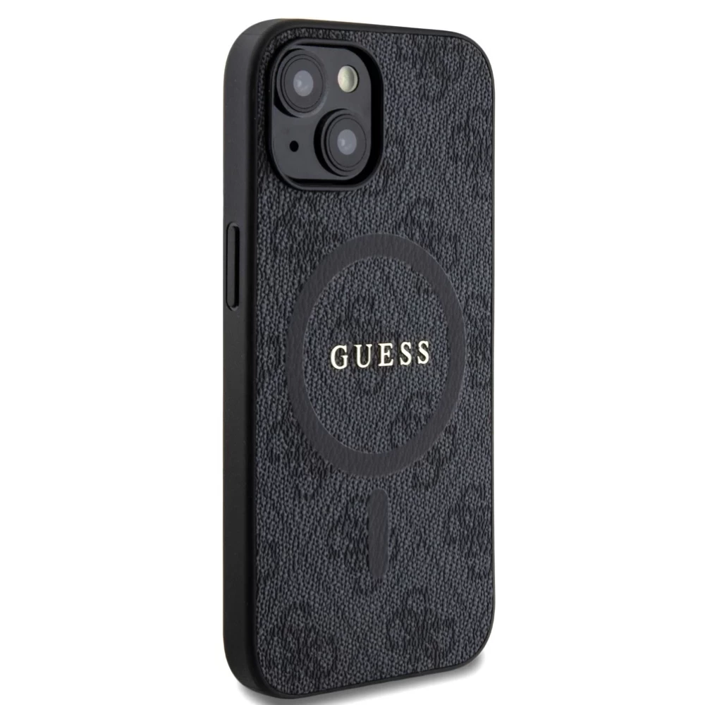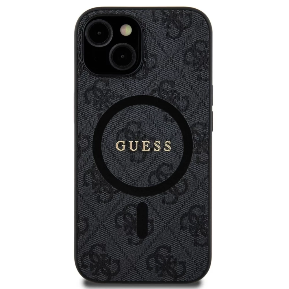 Luxury Guess PU Leather 4G Color Ring MagSafe back cover with elegant print and Guess logo.