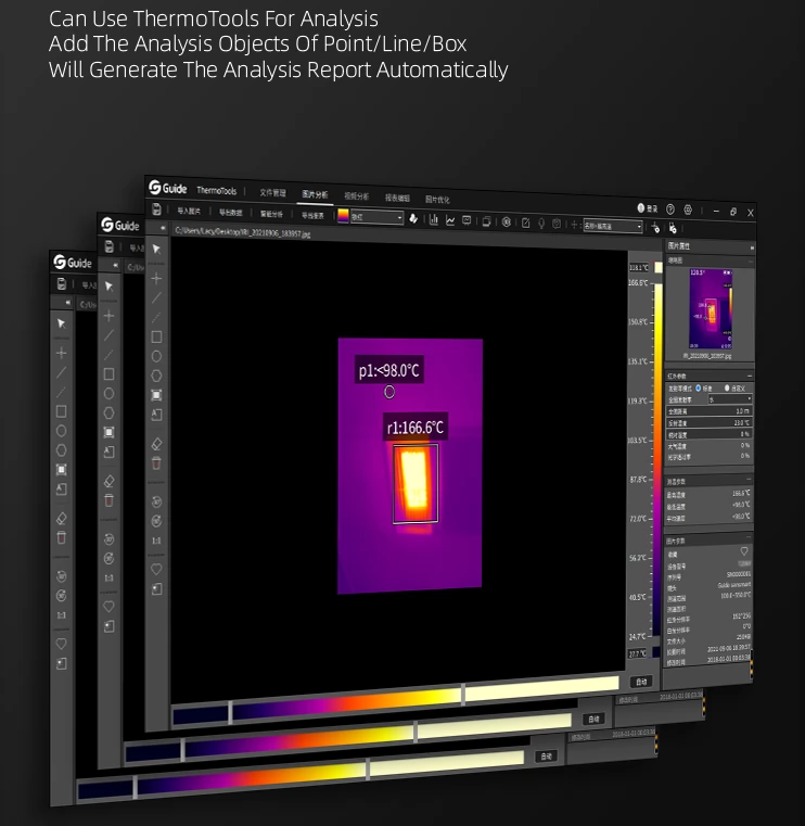 The device comes with a Windows-based software that enables post-processing of images, preparation of reports and archiving of data. Its use is easy to learn, with its help you can quickly view measurement results and prepare reports automatically. We sell the above thermal cameras as a complete system, i.e. together with accessories and basic PC software.
