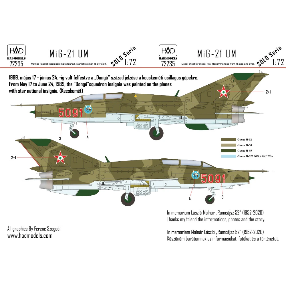 HADMODELS 72235 MiG-21 UM 5091 Dongó fighter makett HAD72235