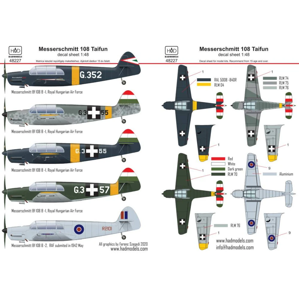 HADMODELS HAD48227 Messerschmitt Bf 108 aircraft makett