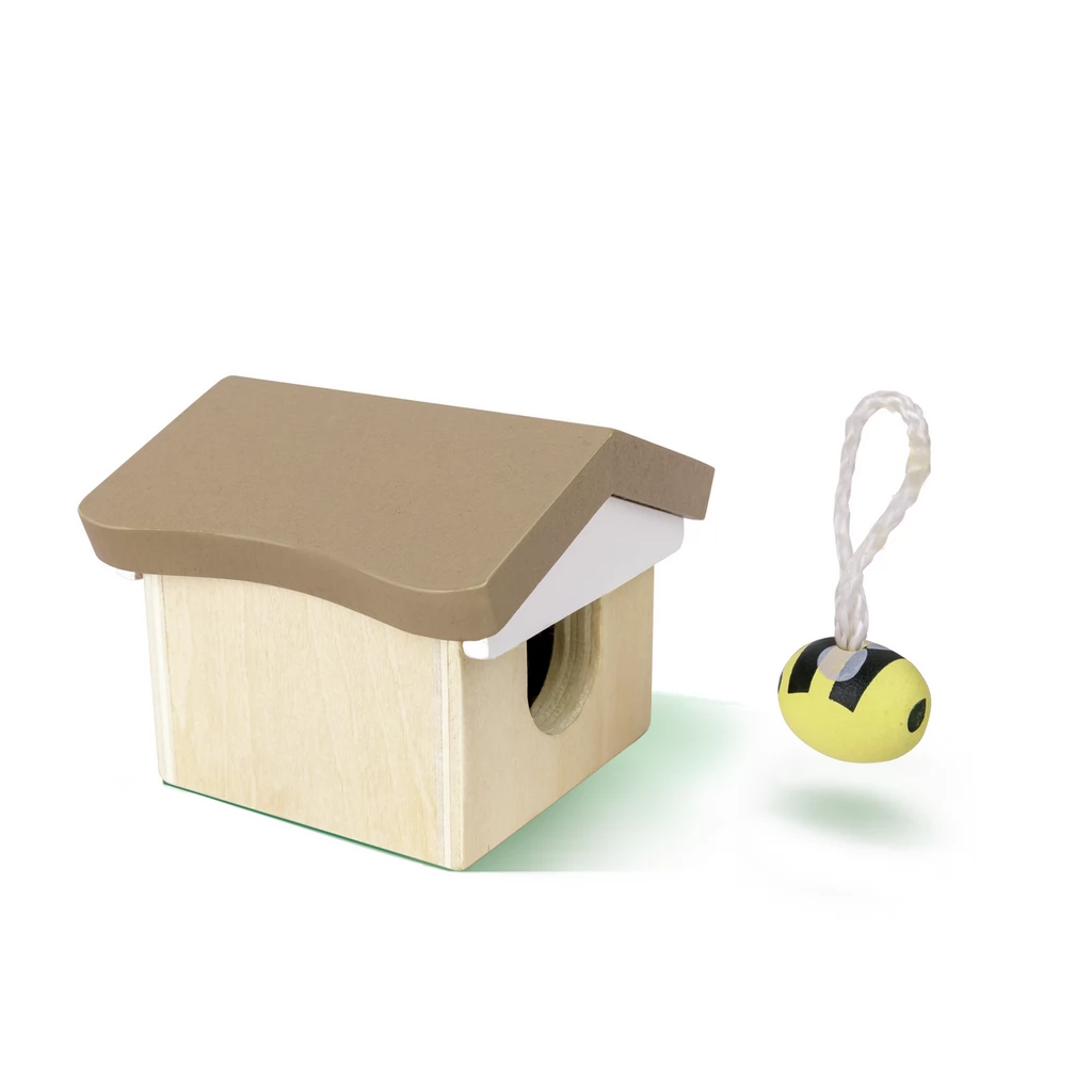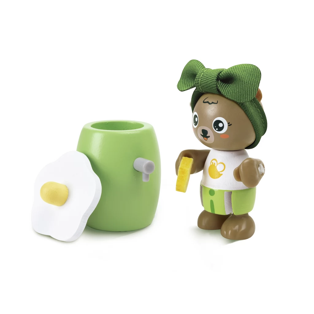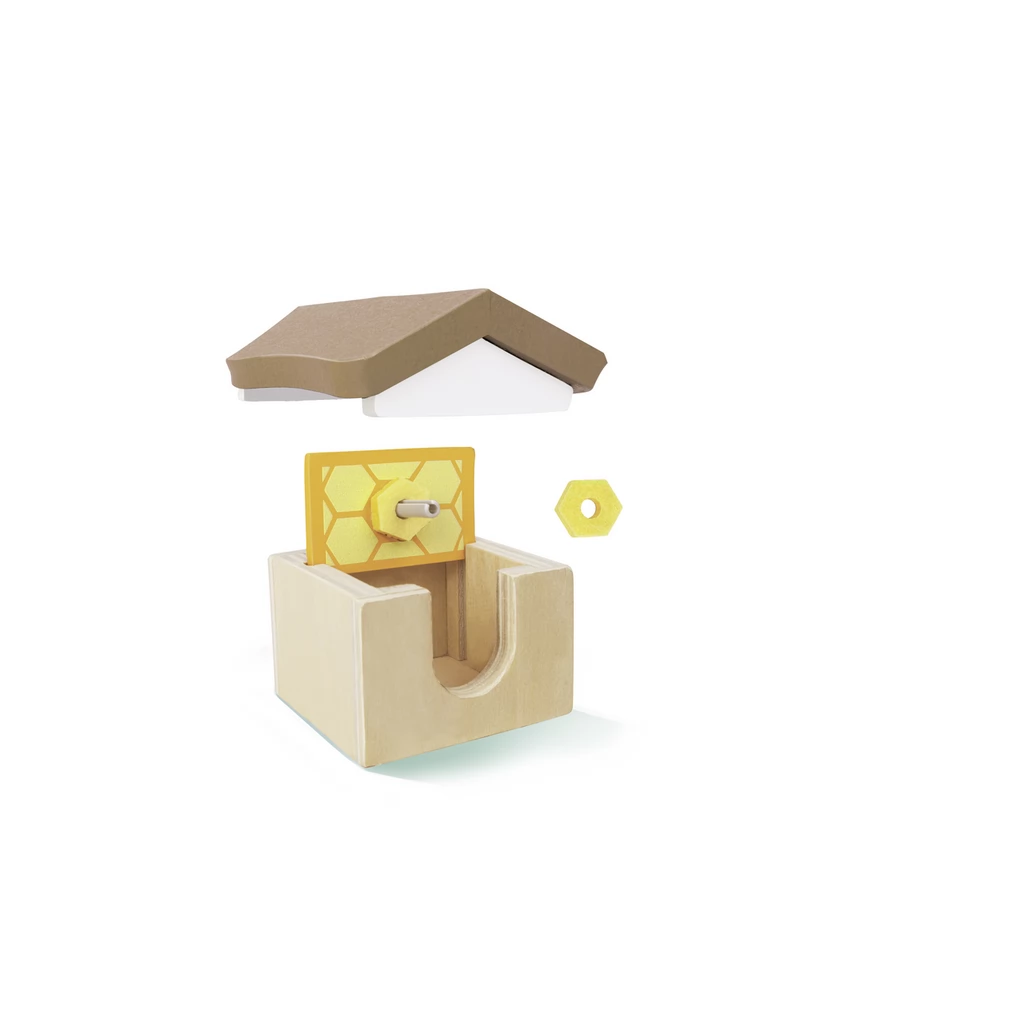 The world of bees is a wooden toy with a teddy bear and 2 bees. In the set, children can pretend to produce honey with the help of bees.
