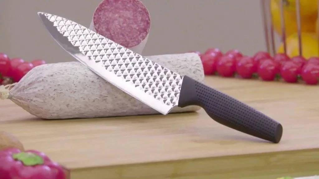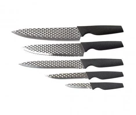 The special rhombus pattern on the special blade makes Harry Blackstone knives truly unique. When cutting, small air cushions are created, which prevent the food from sticking to the knife Ultra-light, stable and really sharp. Thanks to the special design, nothing sticks to the surface of the blade.