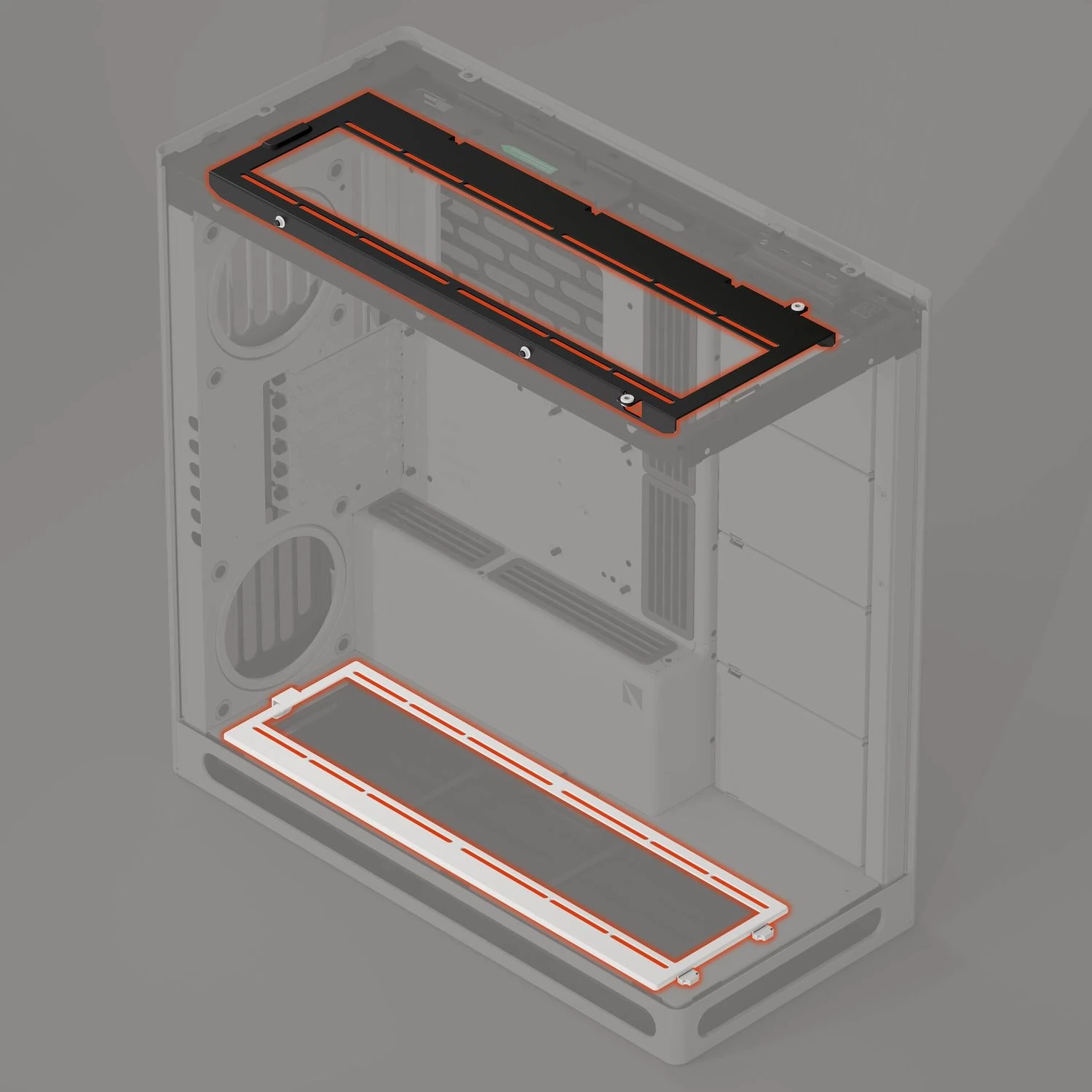 In order for your Havn HS 420 houses to leave no look or cooling, Havn offers two fan holders on top and bottom of the house. With these, up to three 120mm fans or a 360mm radiator can be mounted smoothly on top and bottom of the house with a perfect fit.