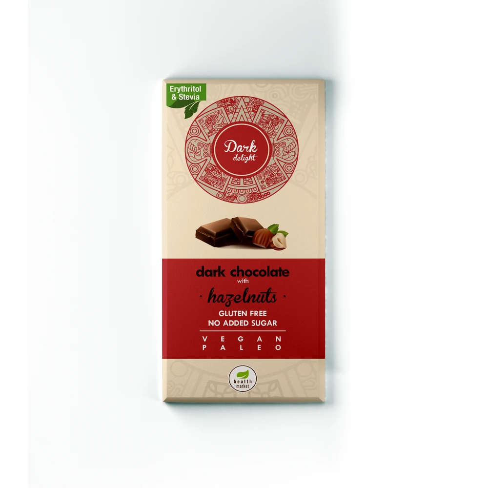 Health Market paleo dark delight étcsokoládé egész mogyoróval édesítőszerekkel 80 g