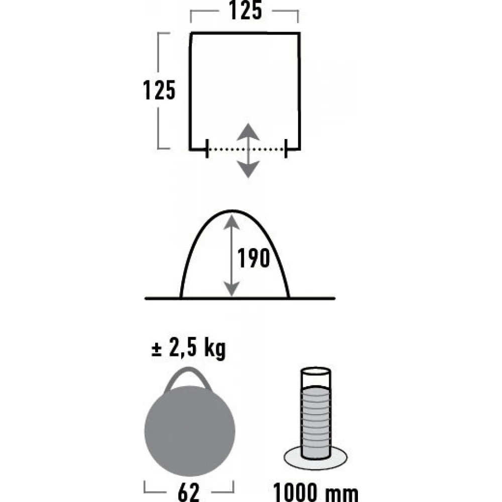 - Dimensions outside: Length: 125 cm x width: 125 cm x height: 190 cm