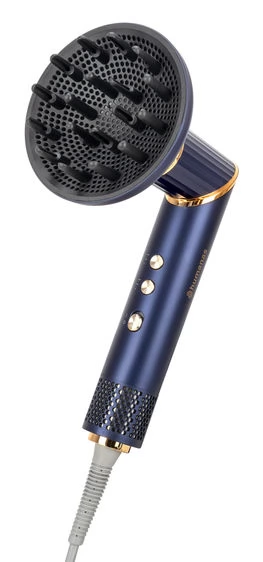 The Humanas AirTouch HD-AT02 is more than an ordinary hair dryer. The device uses the most modern ionization technology to take even better care of your hair's health. It emits more than 10 million units of negative ions per second, effectively preventing hair from becoming electrified. As a result, hair is easier to manage and styling is more effective. The negative ions seal the hair strands, thus protecting them from moisture loss. This ensures softness and flexibility.