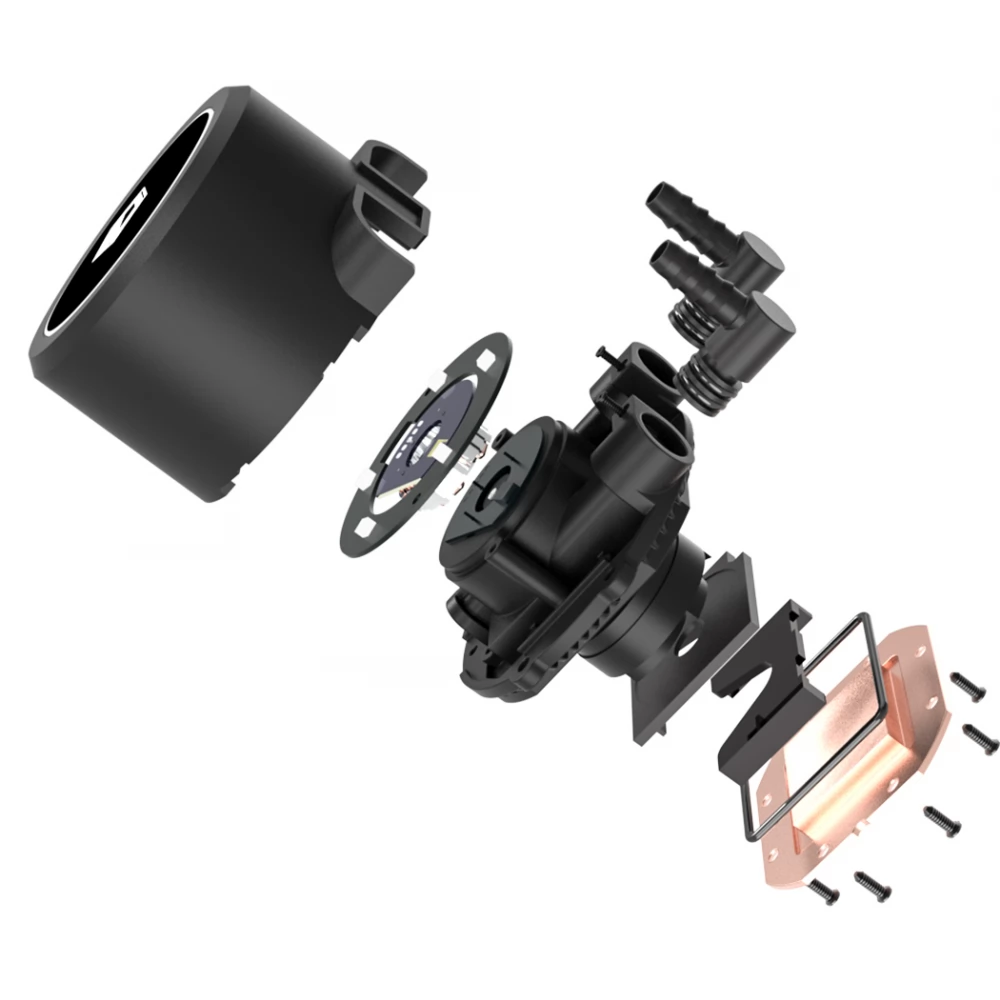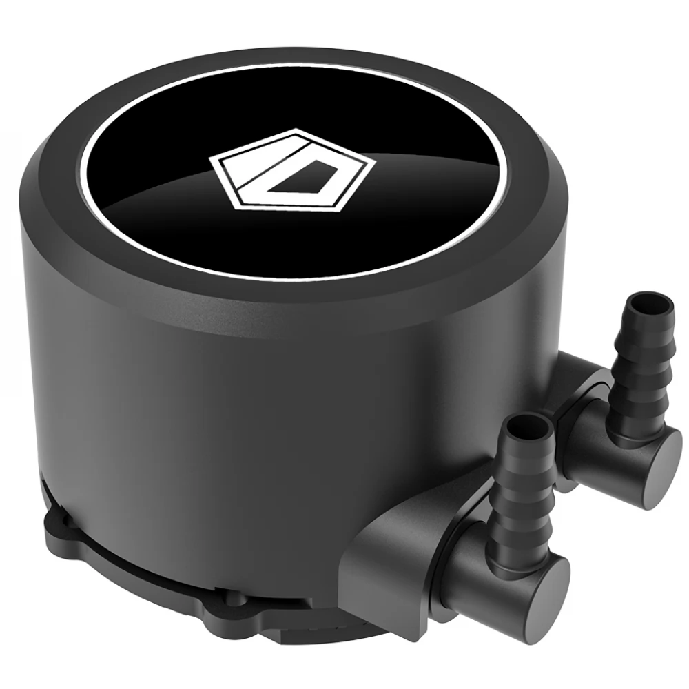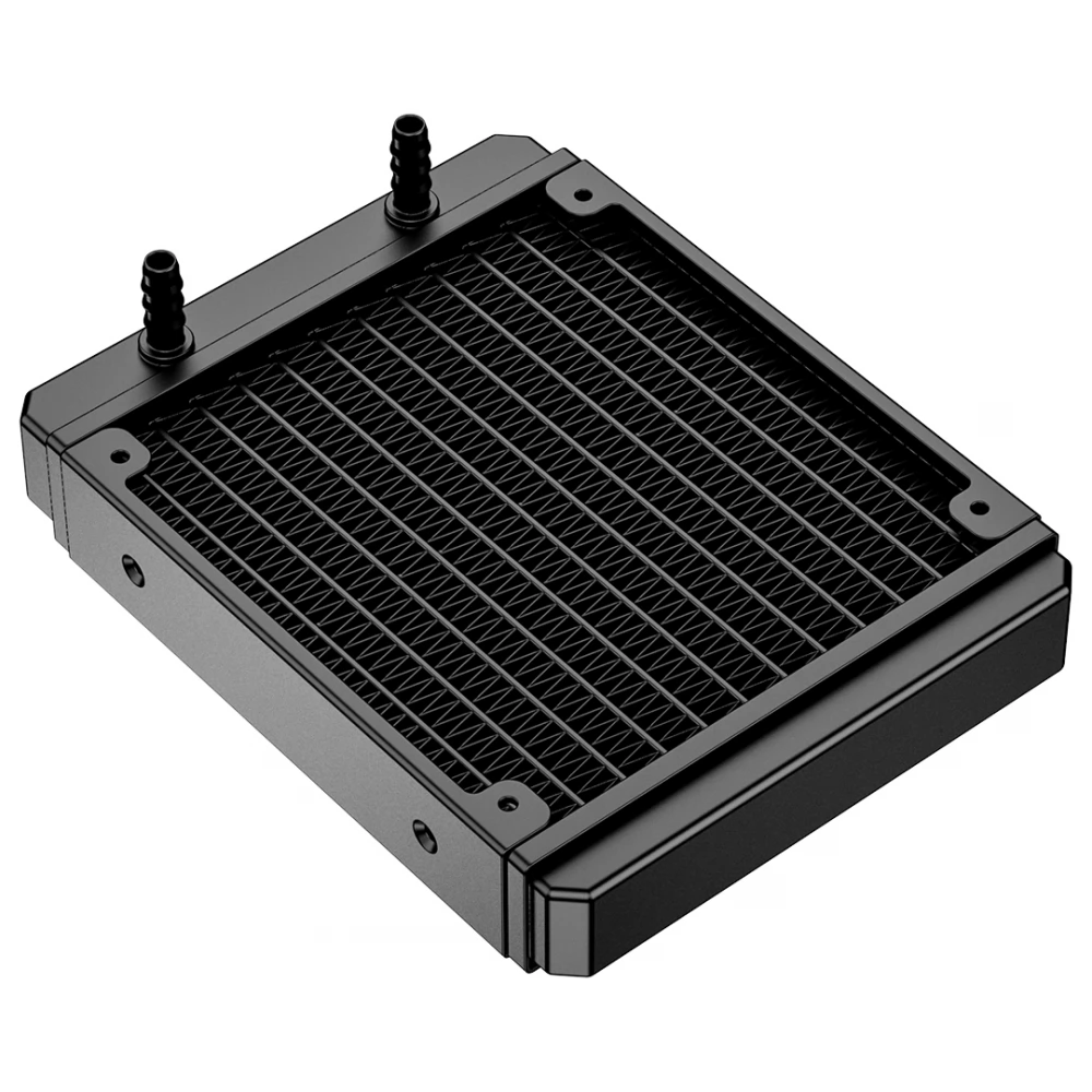 Compact, universal water cooling with a 120mm radiator and a 120mm radiator cooling fan. The pump has white LED lighting.