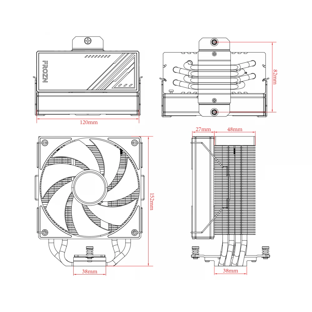 Tower-shaped, heat-conducting tube universal CPU cooler with a 120mm ring controllable fan with ARGB lighting and PWM speed control up to 220W TDP. The special feature of the cooler is the completely white painting, the copper heat-conducting pipes in direct contact, the fan equipped with anti-vibration grips, the lighting of which can also be seen on the frame, and the elegant, controllable ARGB lighting fan cover.