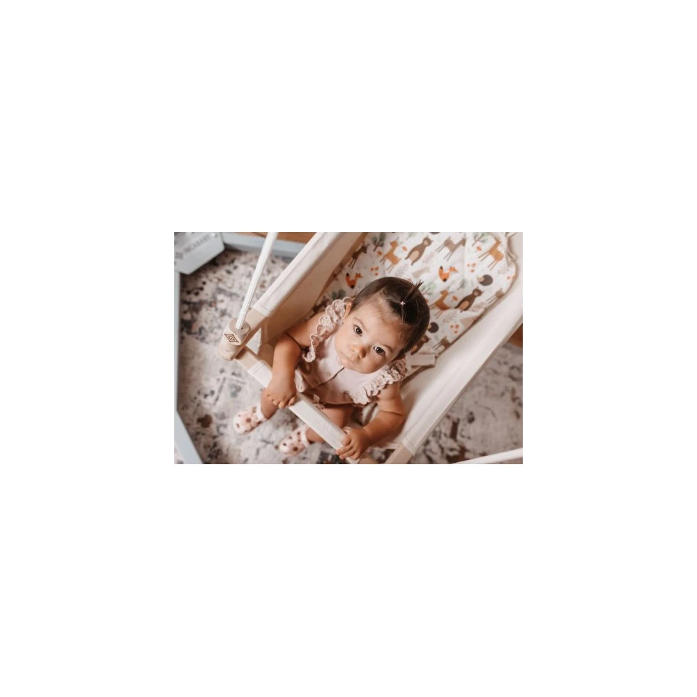 A special indoor baby swing that can be supplemented with a spring, in which the baby can rest in a lying position and play in a sitting position. Completed with a spring, the child can be rocked not only sideways, but also up and down.
