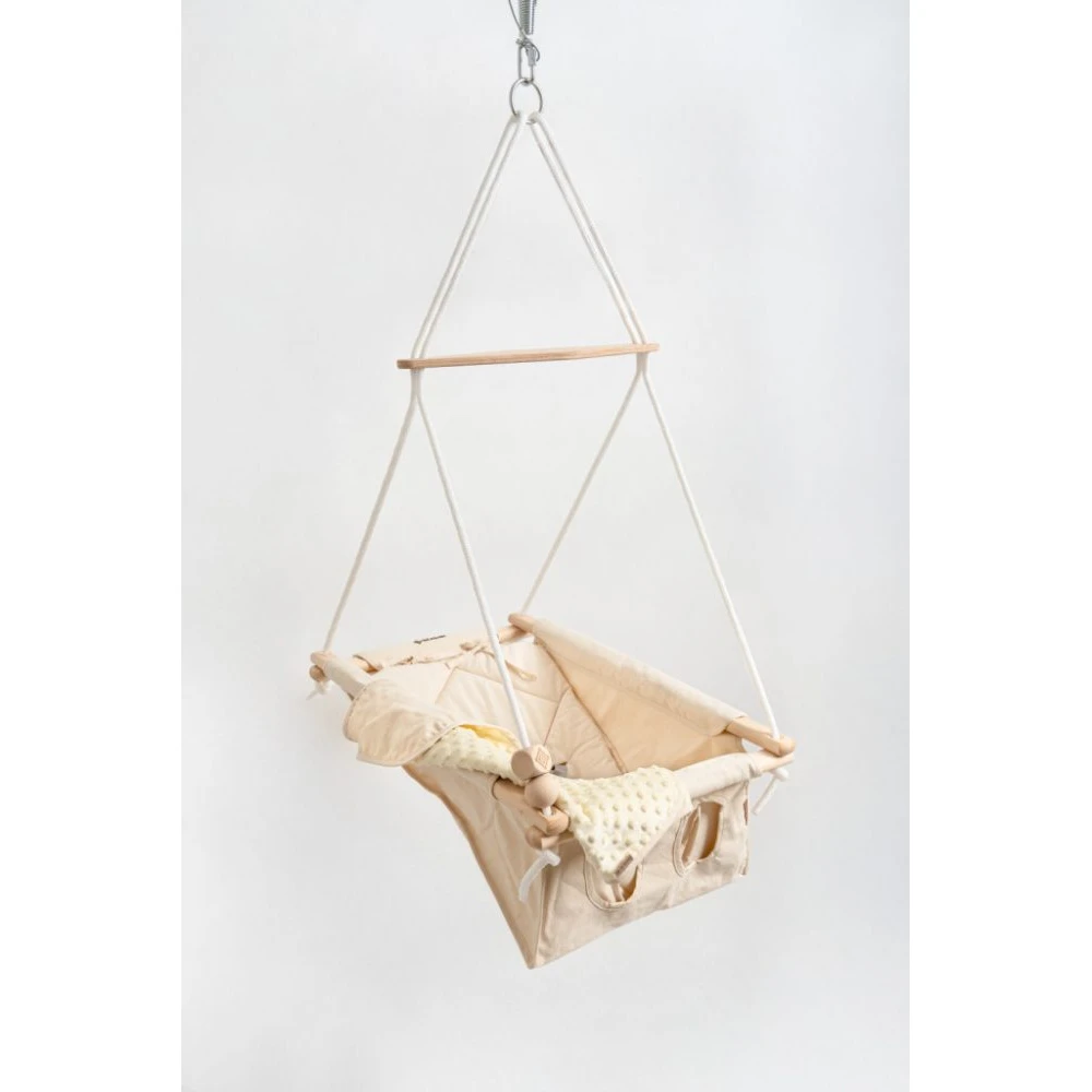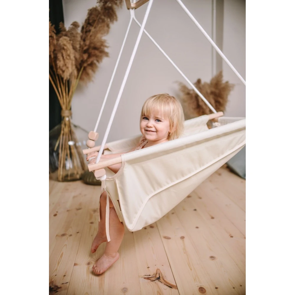 A special indoor baby swing that can be supplemented with a spring, in which the baby can rest in a lying position and play in a sitting position. Completed with a spring, the child can be rocked not only sideways, but also up and down.