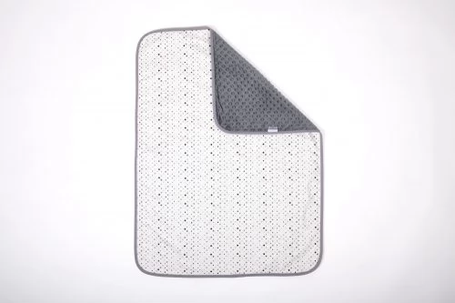 Dual -sided, super soft, lined baby cover for sleeping, traveling, or even toy mats.