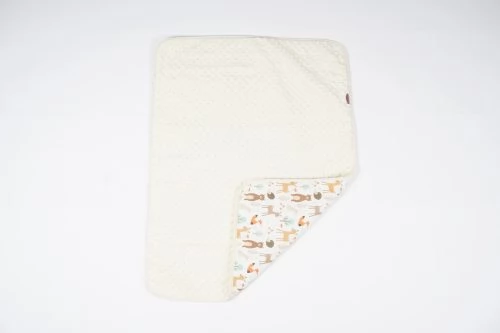 Dual -sided, super soft, lined baby cover for sleeping, traveling, or even toy mats.