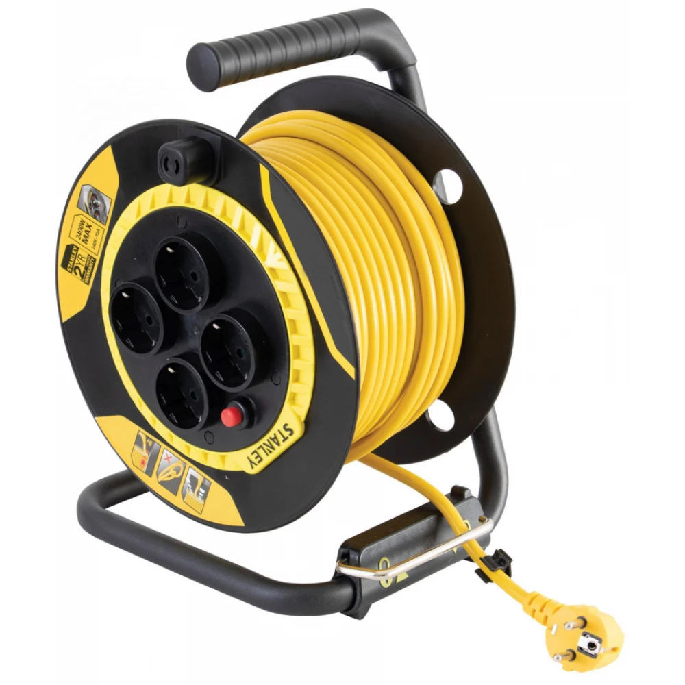Thanks to its massive and robust design, the STANLEY Indoor cable drum will have a long service life, whether in the construction industry or during home use. We recommend it primarily to professionals, even with regular use. Equipped with a built-in cable guide and cable brake. A solid metal foot and handle make it easy to use. The 25 m cable has a striking yellow color for high visibility. It has IP 20 protection, so it is recommended for indoor use.