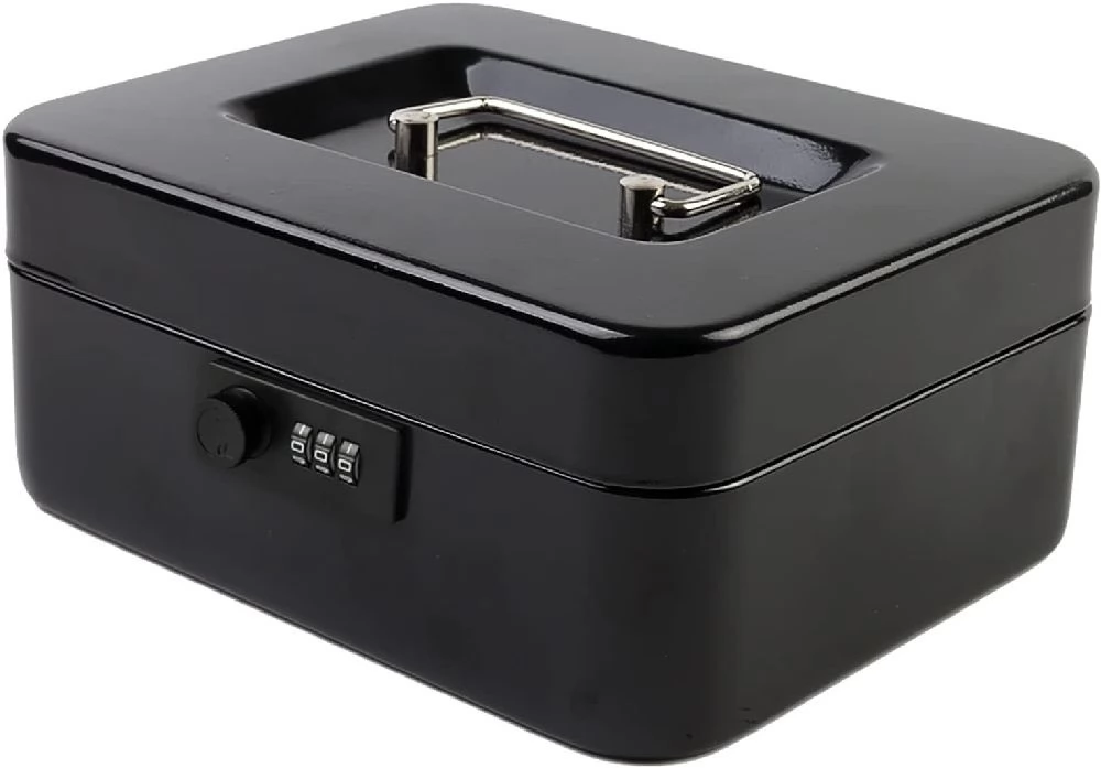 Cash box that can be opened and closed with a classic code for safe storage of small valuables and cash.