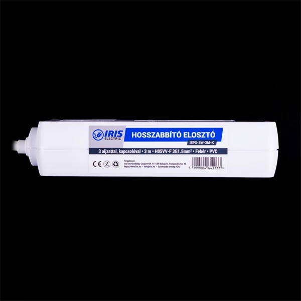IRIS IEPS-3W-3M-K Extension cord distributor 3 outlet switch 3m white