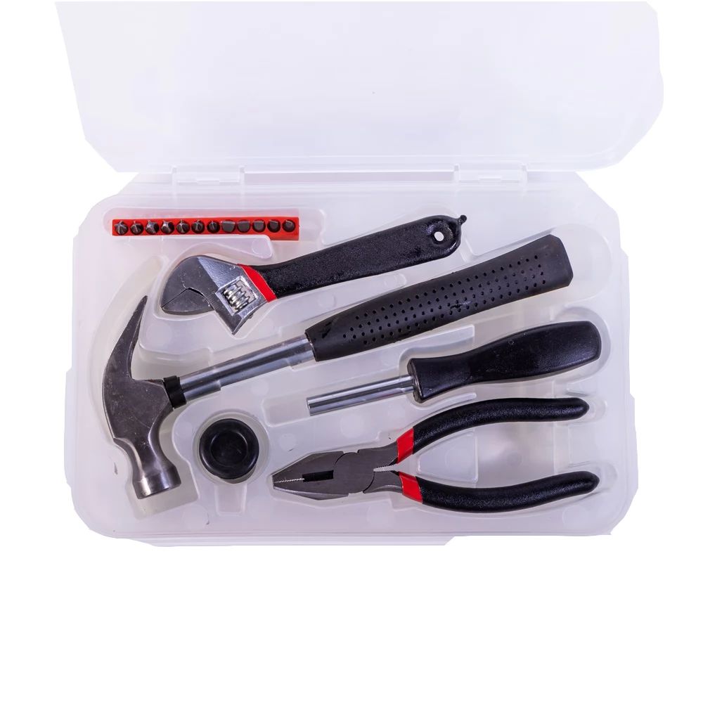 High-quality 17-piece tool set designed for work around the house and for small industrial use.