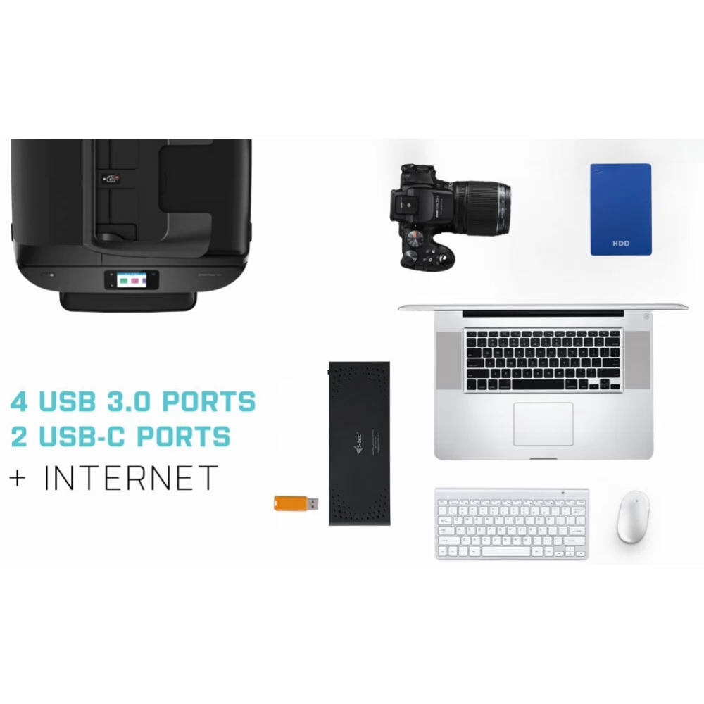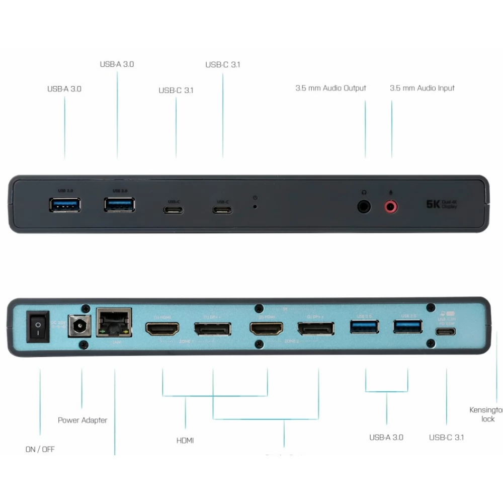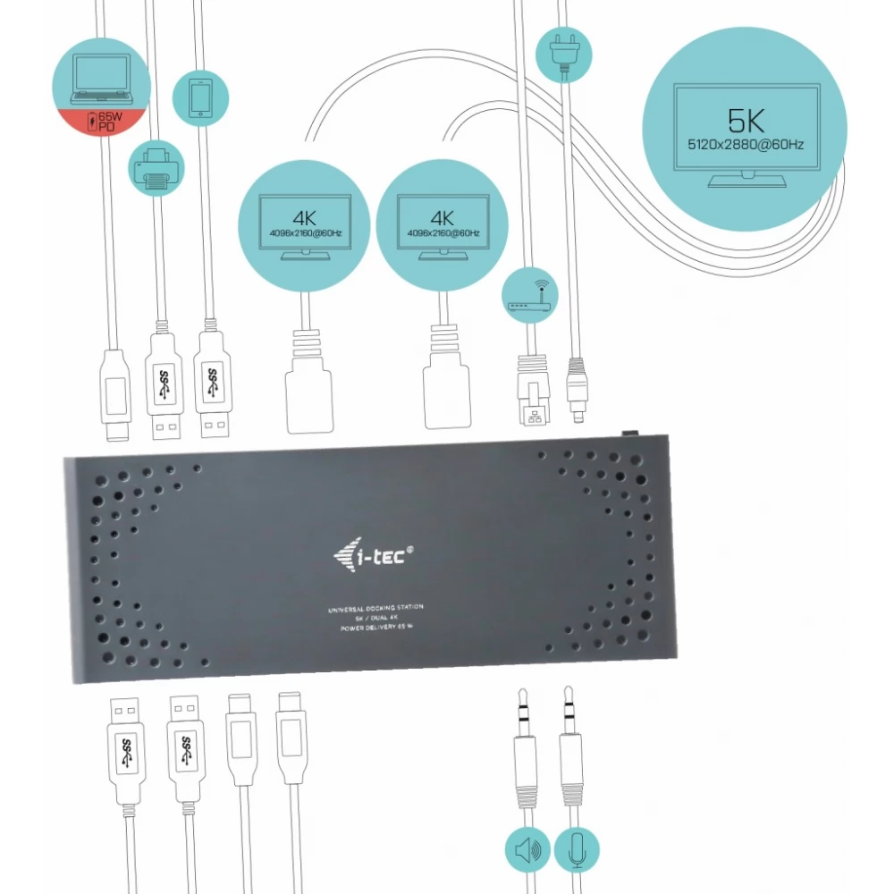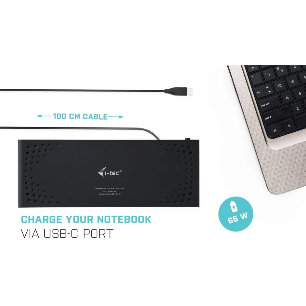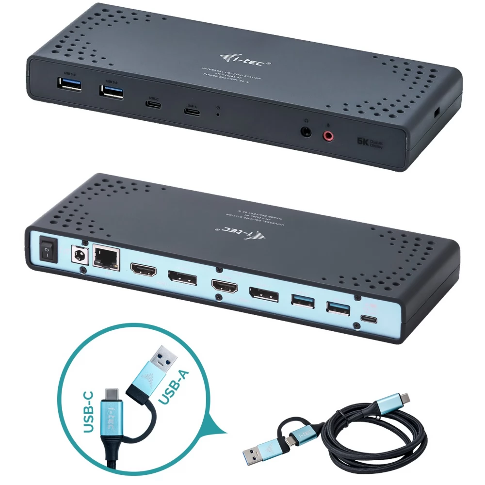 - Universal docking station, compatible with USB-C, USB-A and Thunderbolt laptops and tablets.