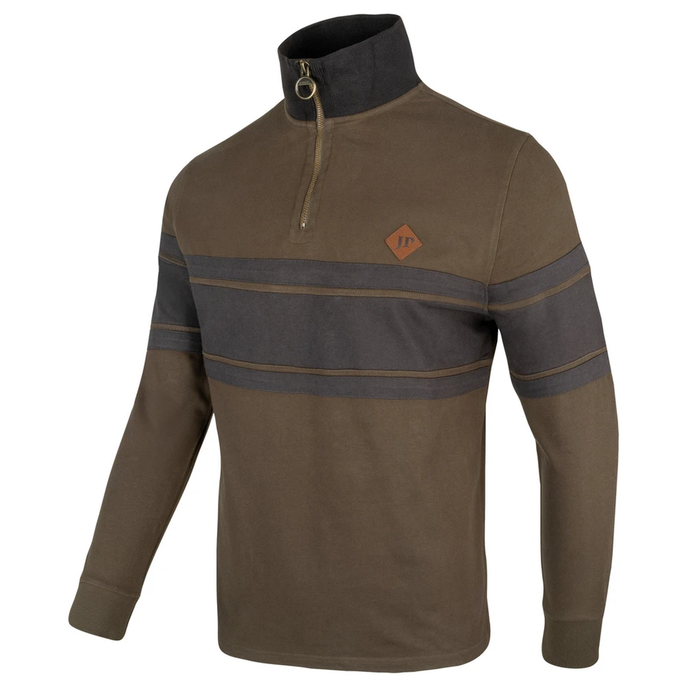 The Half Zip Contrast sweater combines comfortable wear with an elegant, country look. The high, stand-up collar with metal ring zip, contrast panels running across the chest and sleeves, and the discreet JP chest logo give it a premium look.
