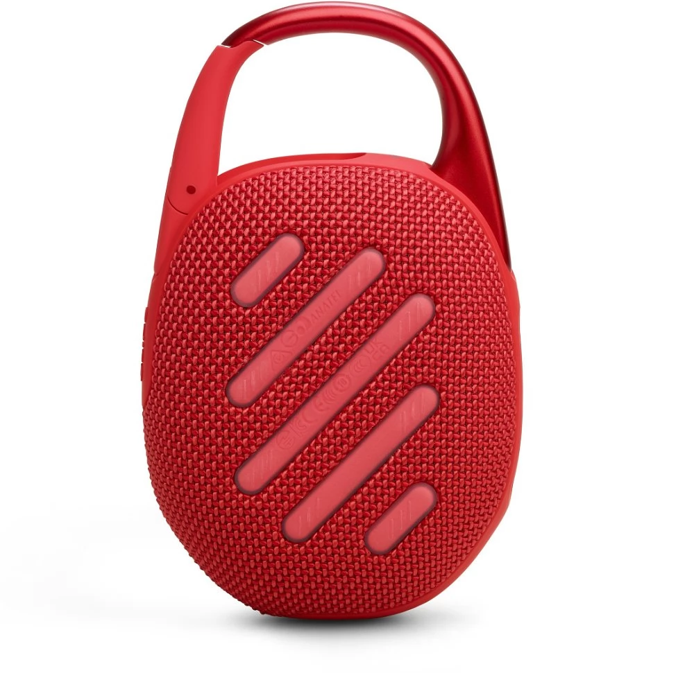 The JBL Clip 5 Portable Bluetooth Speaker is small enough to hold in one hand, but don't let its size fool you. The wide, fully integrated carabiner is big enough to attach to almost anything. The powerful driver and passive radiator deliver bigger, louder JBL Pro sound and punchy bass. Get up to 12 hours of playtime on a single charge – and even more when Playtime Boost is turned on. Speaking of the outdoors, it's IP67 certified, water and dust resistant, so it's natural to take it with you on your next hike or camping trip. Pair two Clip 5s for stereo sound, or connect multiple JBL Auracast-compatible speakers for even bigger sound. In addition, it is available in several colors, so you are sure to find the right one for you. Every day is an adventure with the JBL Clip 5.