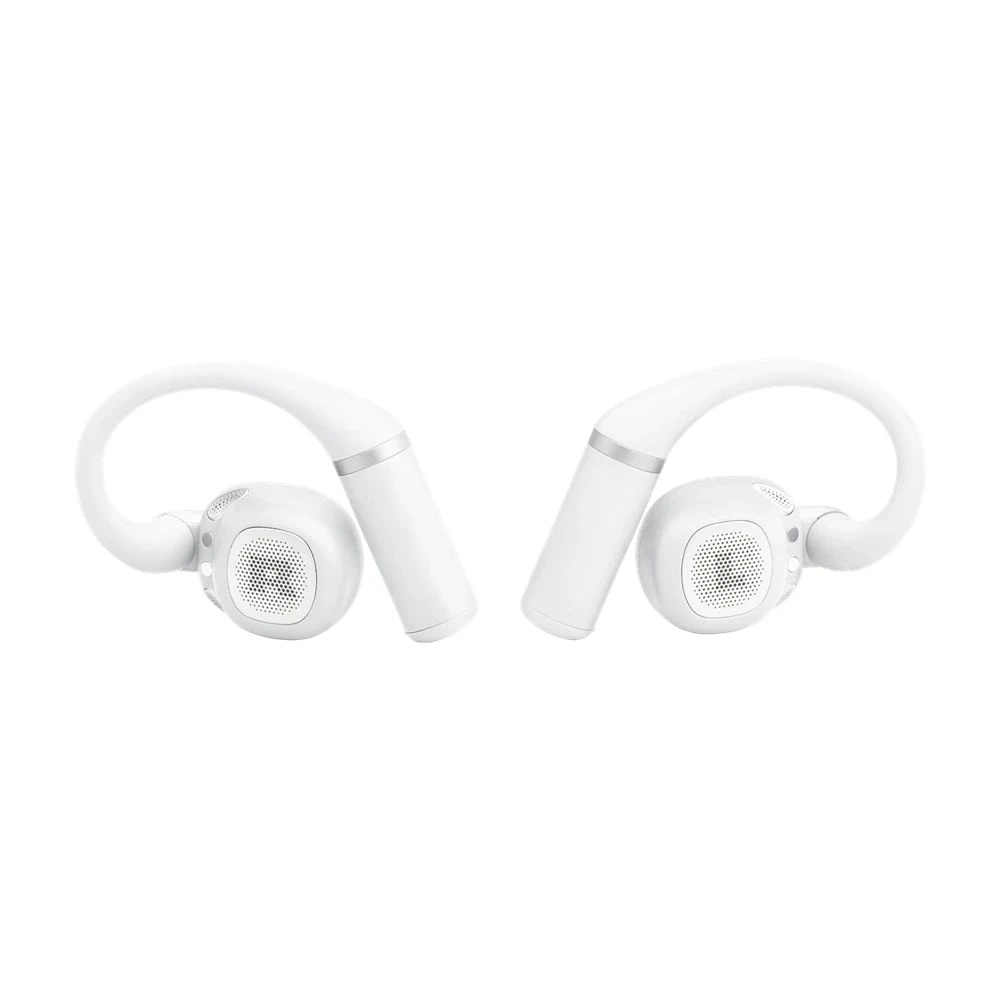 Feel the world around you with JBL Sense Pro headphones. Stay in touch with your surroundings as you immerse yourself in rich, vivid surround sound with JBL OpenSound technology, air conduction, which is also Hi-Res Audio Wireless certified. The unique, adjustable, split ear hook is soft and ergonomically designed with metallic accents for a secure fit and custom fit to your ear for all-day comfort. Four voice microphones, our proprietary AI-trained noise reduction algorithm, and sound sensor for clear sound ensure that your calls are heard loud and clear even on a windy day. And if a little water falls, the JBL Sense Pro boasts an IP54 rating. With up to 38 hours of wireless rechargeable battery, JBL Sense Pro will help you even on the longest days. Use the JBL Headphones app to fine-tune your personalized listening profile and customize the intuitive touch controls to control your music and calls to your liking.