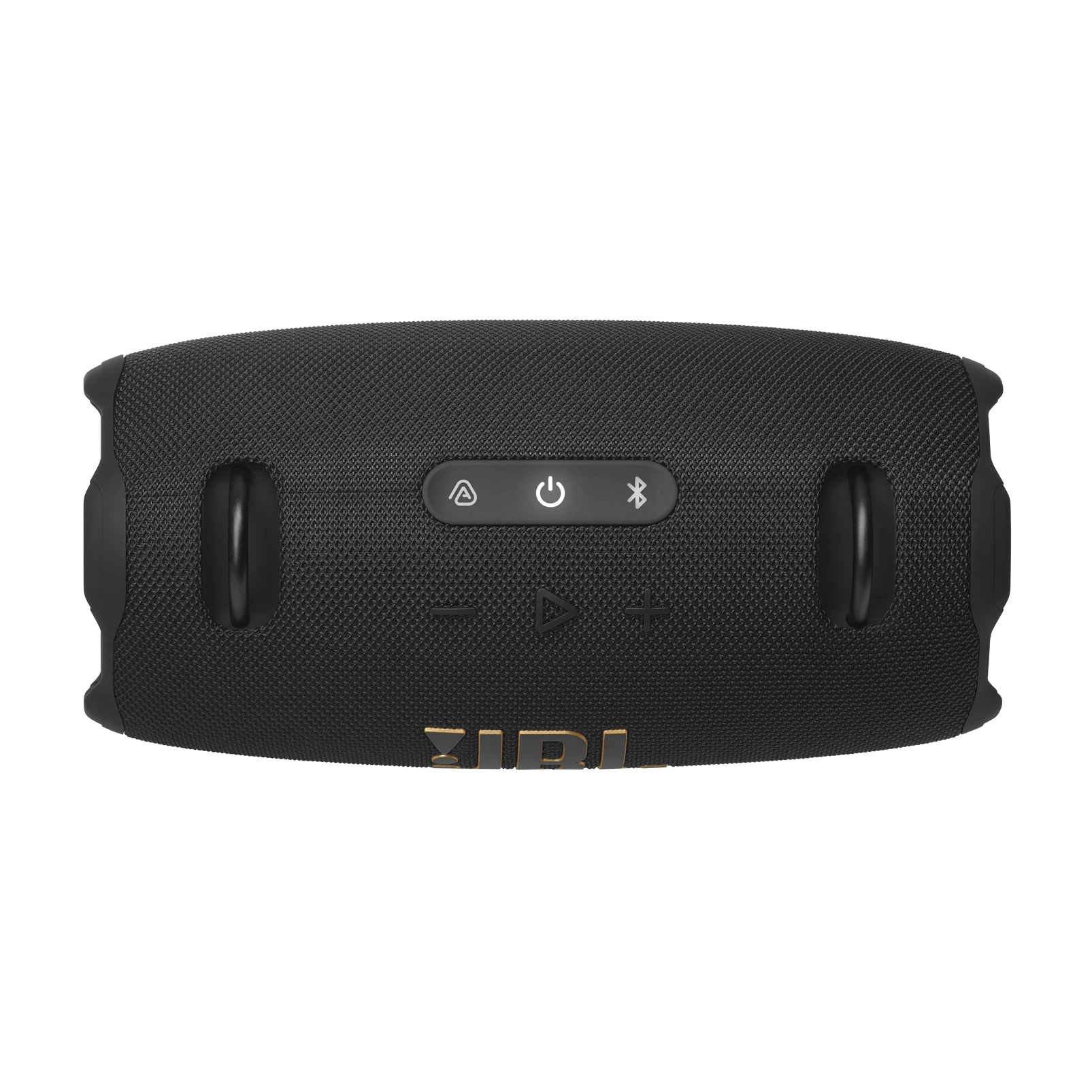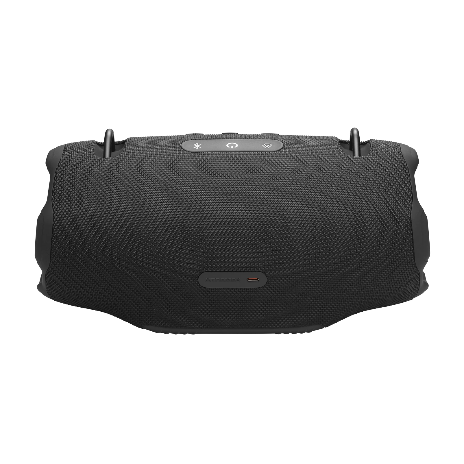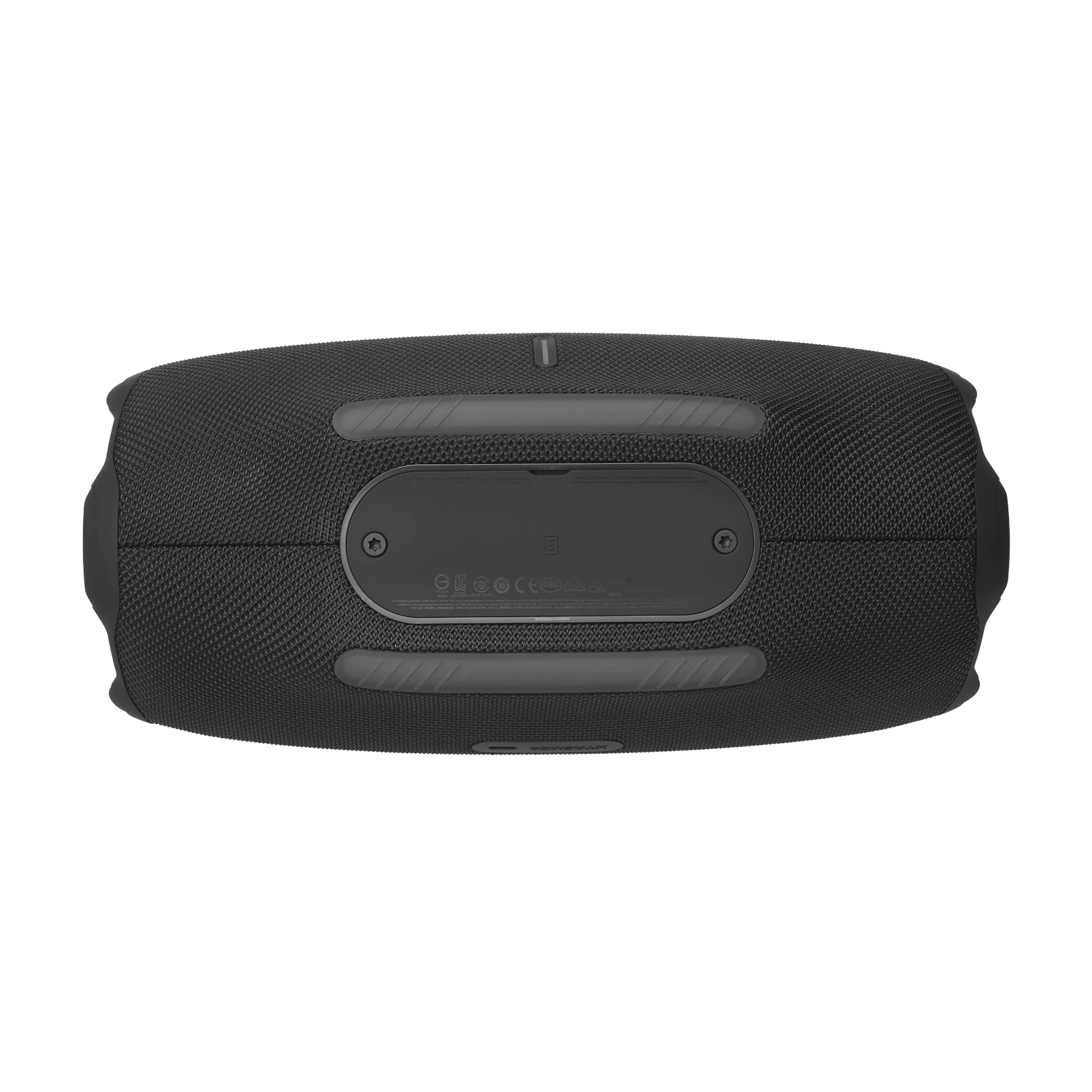 The JBL Xtreme 4 portable waterproof speaker provides new, massive JBL Pro Sound sound with amazing dynamics, even at maximum volume, thanks to two woofers and two tweeters. Double JBL passive radiators provide deeper bass. Want to take your music outside? A handy shoulder strap makes it easy to carry, while the rugged rubber edges and IP67 water and dust resistance rating mean a sudden downpour won't stop you having fun. When it's time to create an even bigger audio experience, pair two Xtreme 4s for stereo sound. Or at your next party, use Auracast to connect the Xtreme 4 to any compatible JBL portable speaker, so your friends lounging in the garden can listen to the same playlist as those chatting in the apartment. The 24-hour playing time and the device's convenient power bank mean that you don't have to recharge it until morning. The speaker is made from recycled plastic and recycled fabric. JBL Xtreme 4 brings exciting sound with you - anywhere.