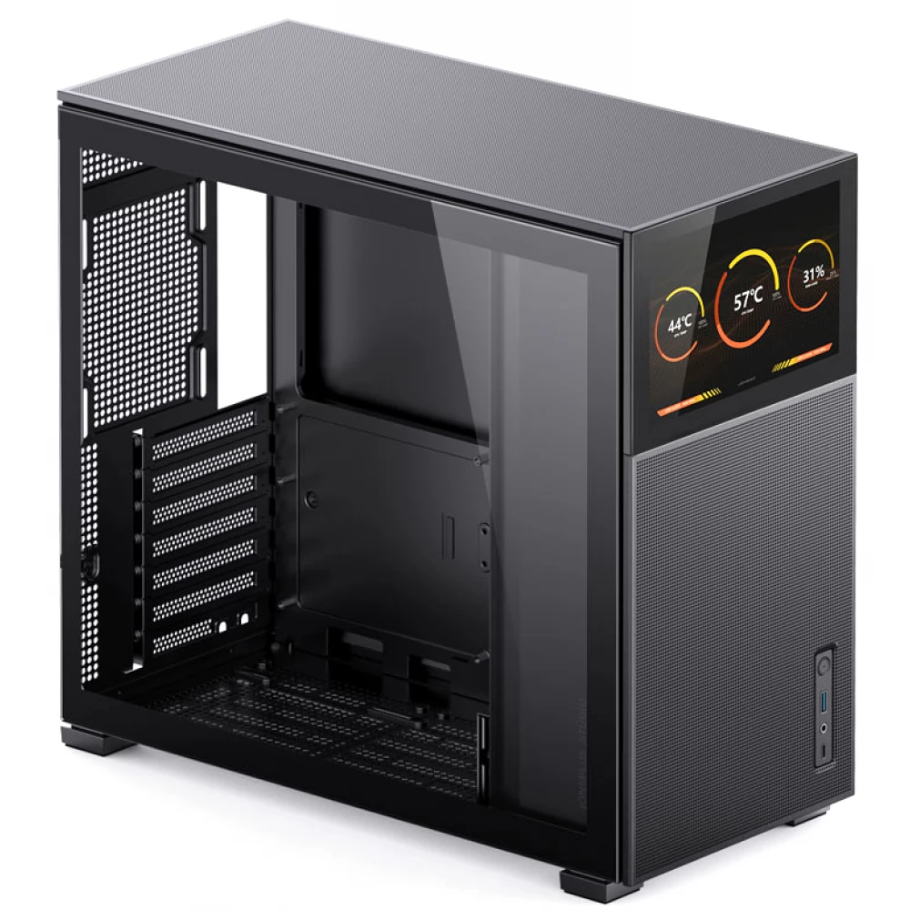 ATX format Midi-tower design computer case with built-in display. With the D41, Jonsbo introduces the Pine Cones series ATX computer case, which is compact, elegant and versatile. Whether you prefer air or water cooling, the Jonsbo D41 offers plenty of room for both. Depending on how big your GPU is and how big a fan you need, you can place the power supply on the front panel as you see fit.