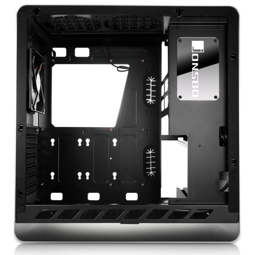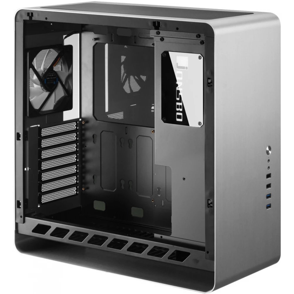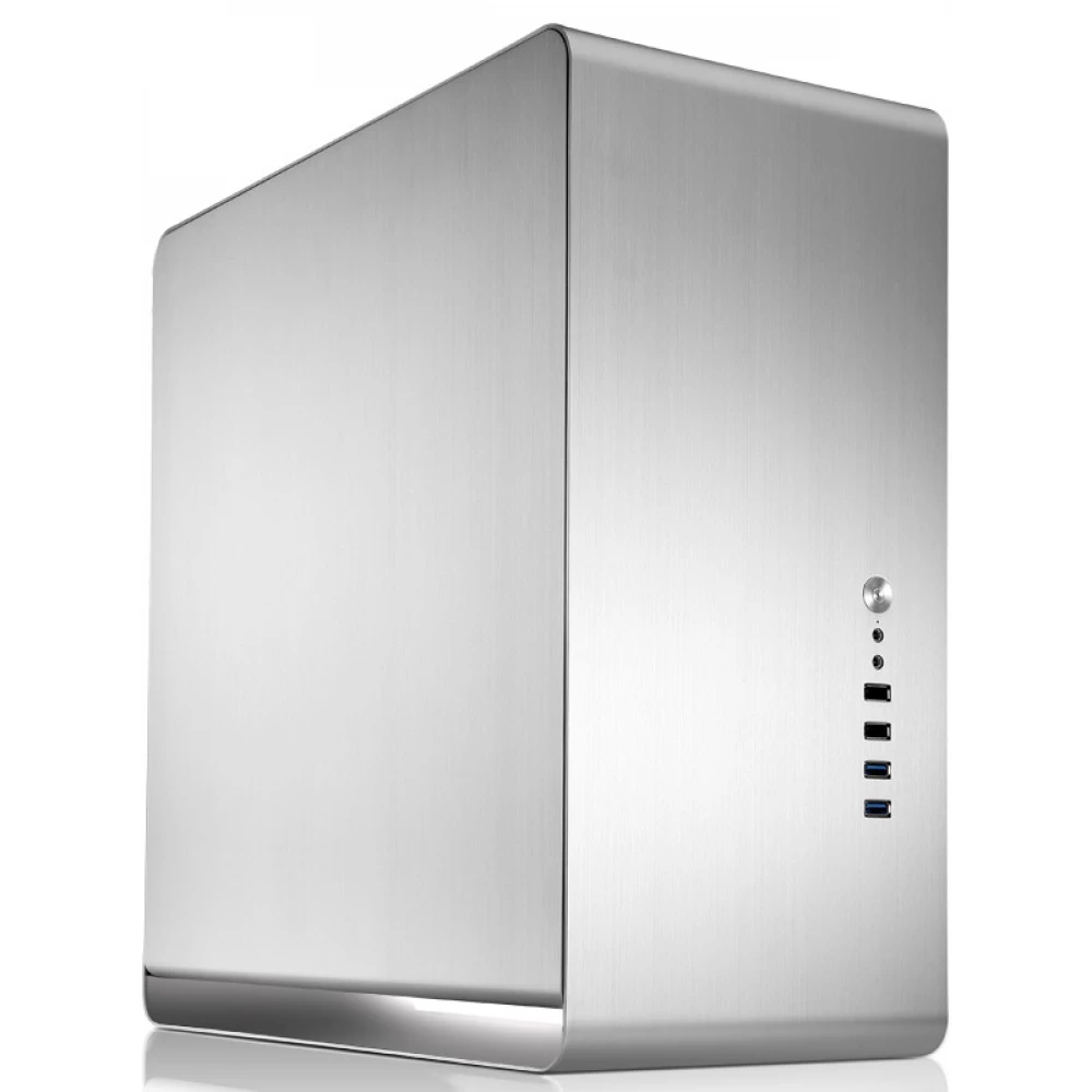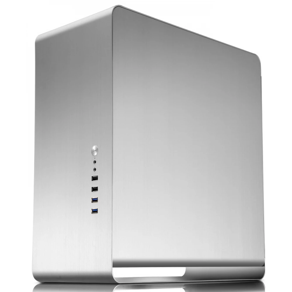 A silver-colored ATX format computer case with an elegant appearance and built from quality materials.