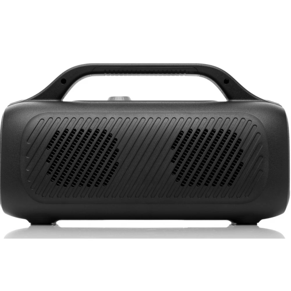 Grab it by the built-in handle and go surrounded by music – the JVC XS-E843B portable speaker is great for indoor and outdoor music playback. IPX5 certification guarantees the speaker's water resistance, so even a light rain can't harm it. Plus, it looks great thanks to the built-in LED lights. With a single charge, the Li-ion battery plays and lights up for up to 16 hours.