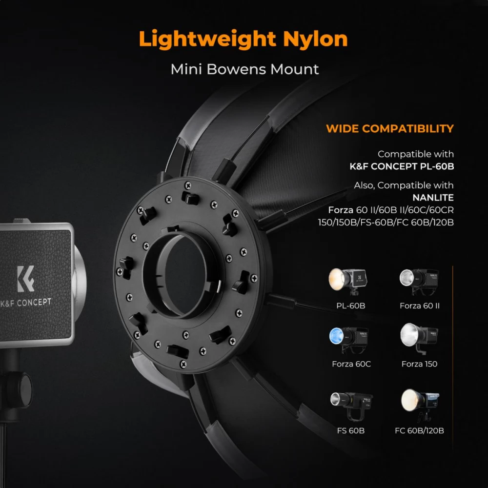 - Connection: Mini Bowens Bayonet compatible with a number of compact LED lamps